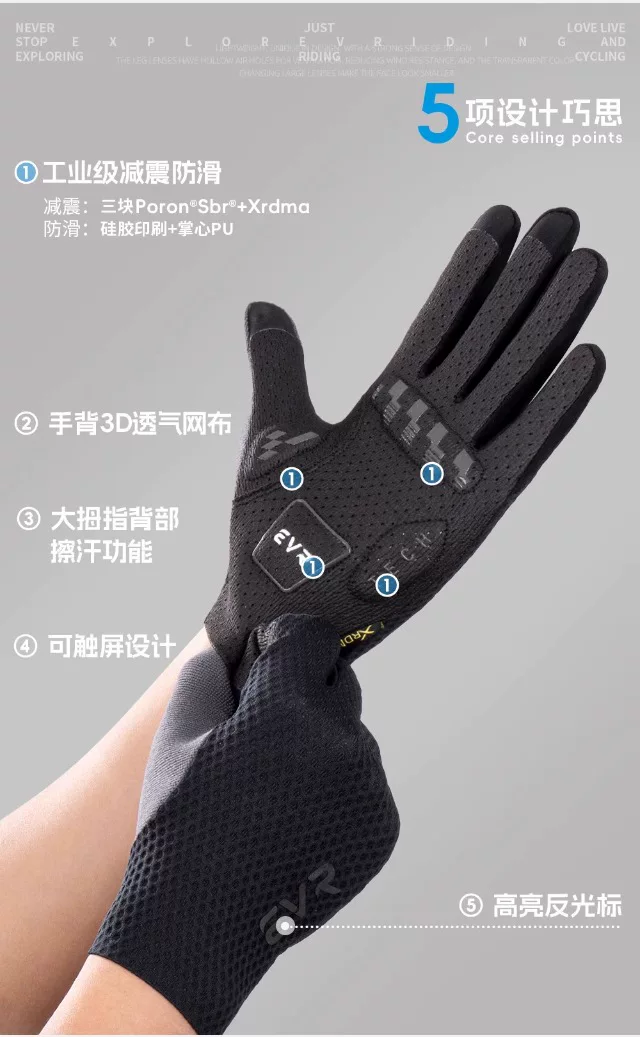 - Găng tay đi xe đạp EVR full-finger mùa hè unisex xe đạp đường bộ thoáng khí ngoài trời dài ngón tay chống sốc chống trượt ngoài trời