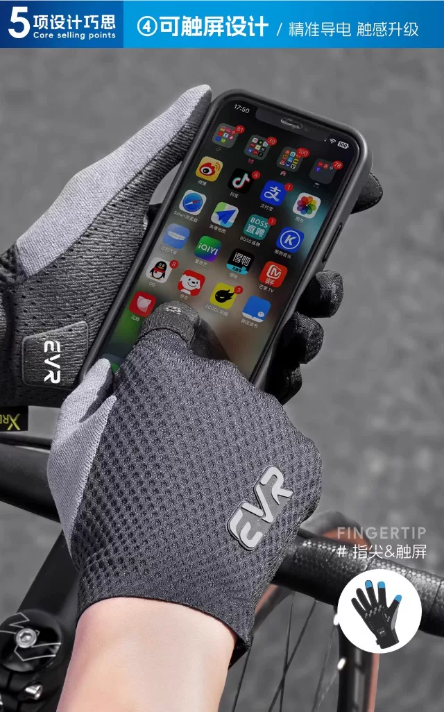 Găng tay đi xe đạp EVR full-finger mùa hè unisex xe đạp đường bộ thoáng khí ngoài trời dài ngón tay chống sốc chống trượt ngoài trời
