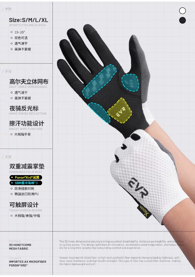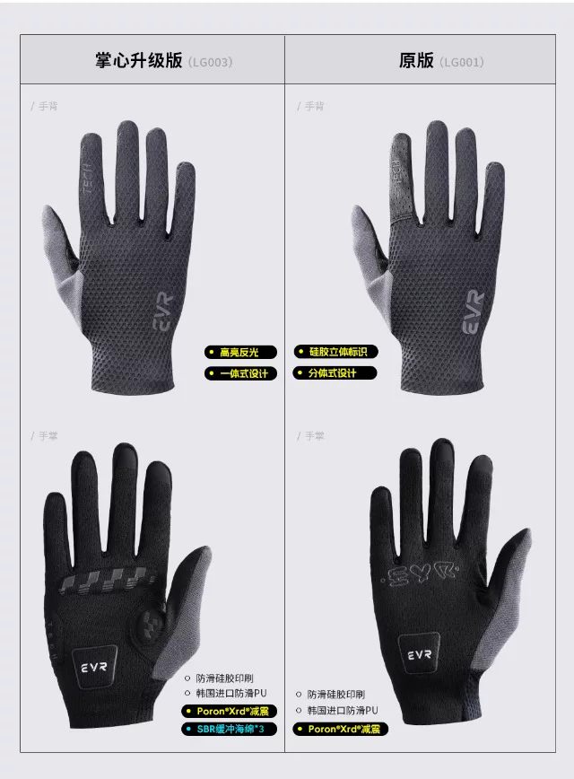- Găng tay đi xe đạp EVR ngón dài mùa hè unisex đường xe đạp leo núi đầy đủ ngón tay ngắn đi xe đạp thiết bị chống trượt hấp thụ sốc