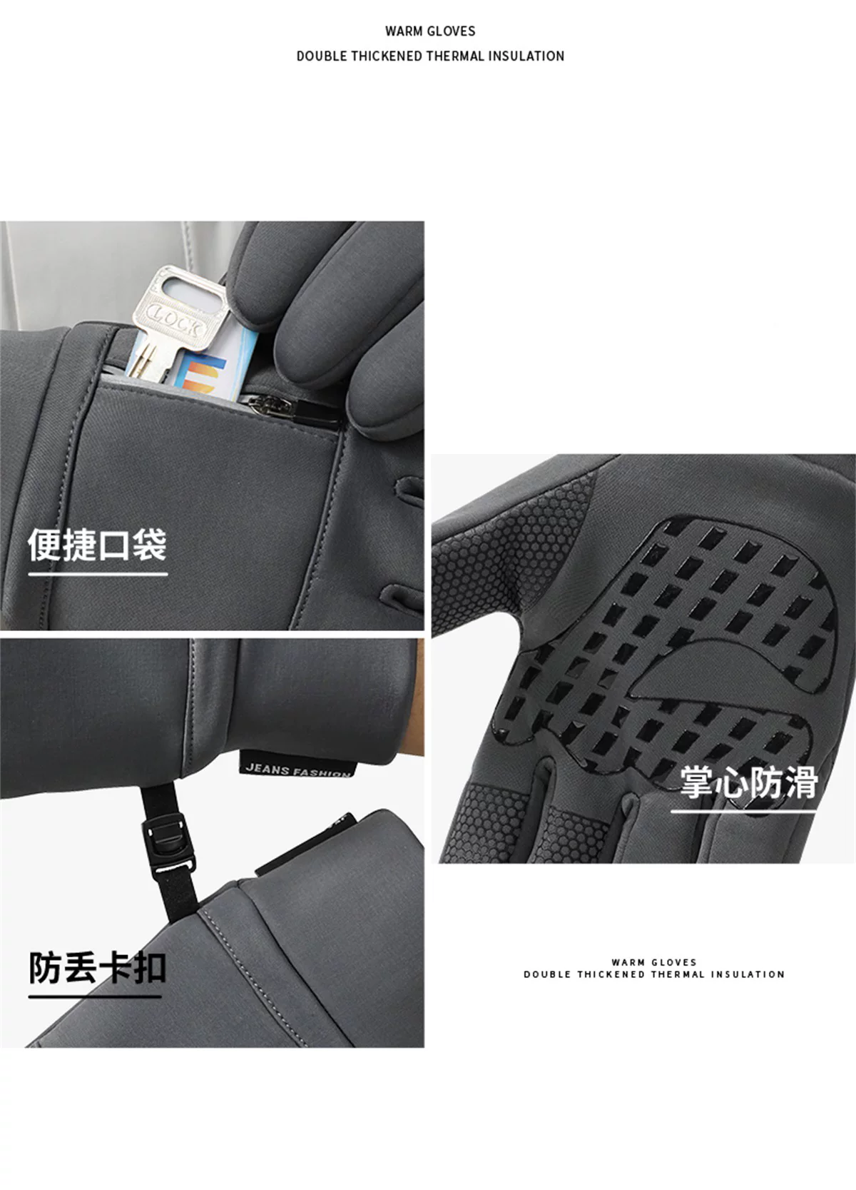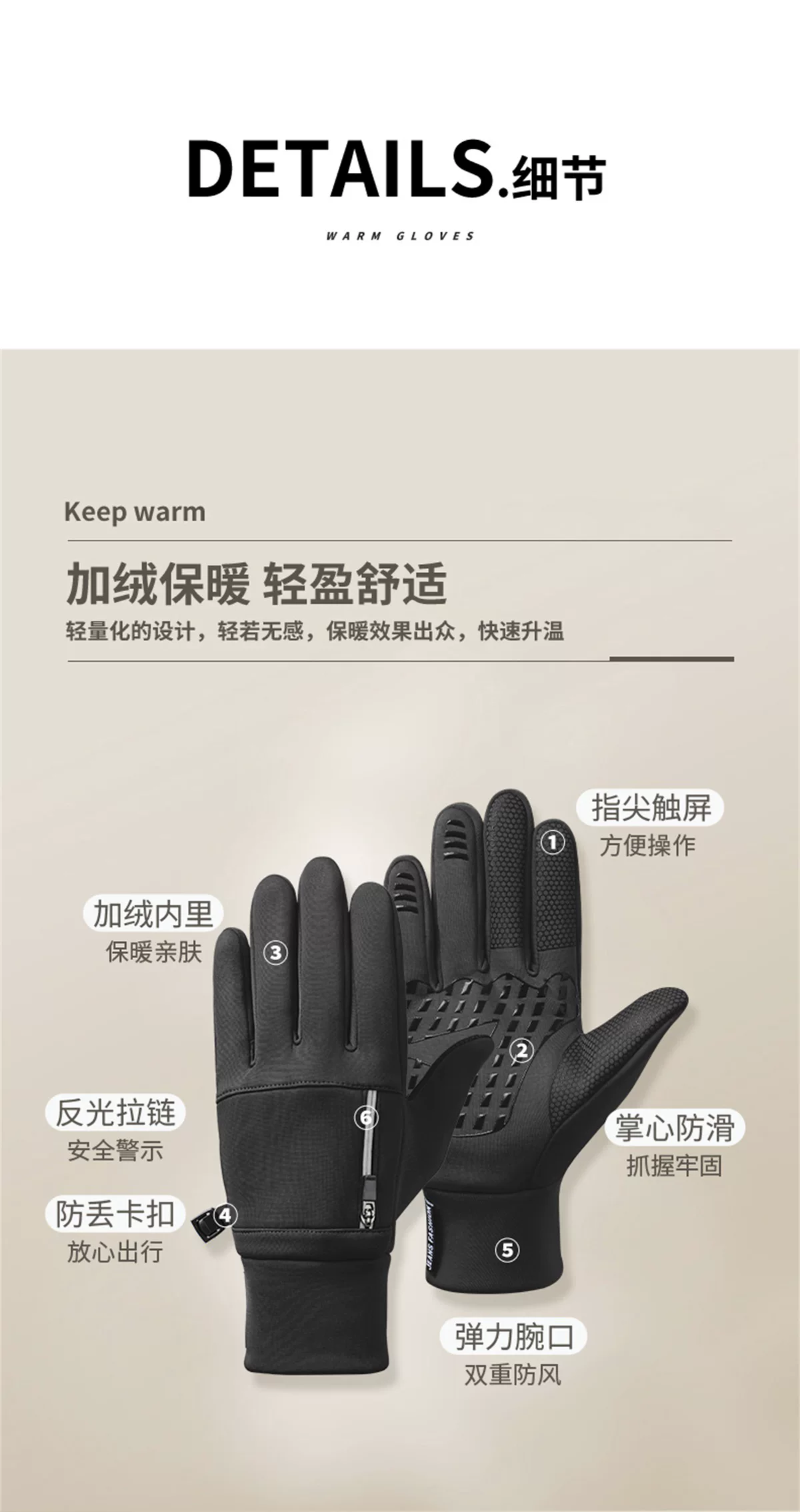 - Găng tay đi xe đạp nam mùa đông ngoài trời xe đạp điện chống gió và ấm áp lót lông cừu màn hình cảm ứng găng tay thể thao chống thấm nước