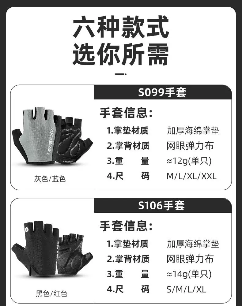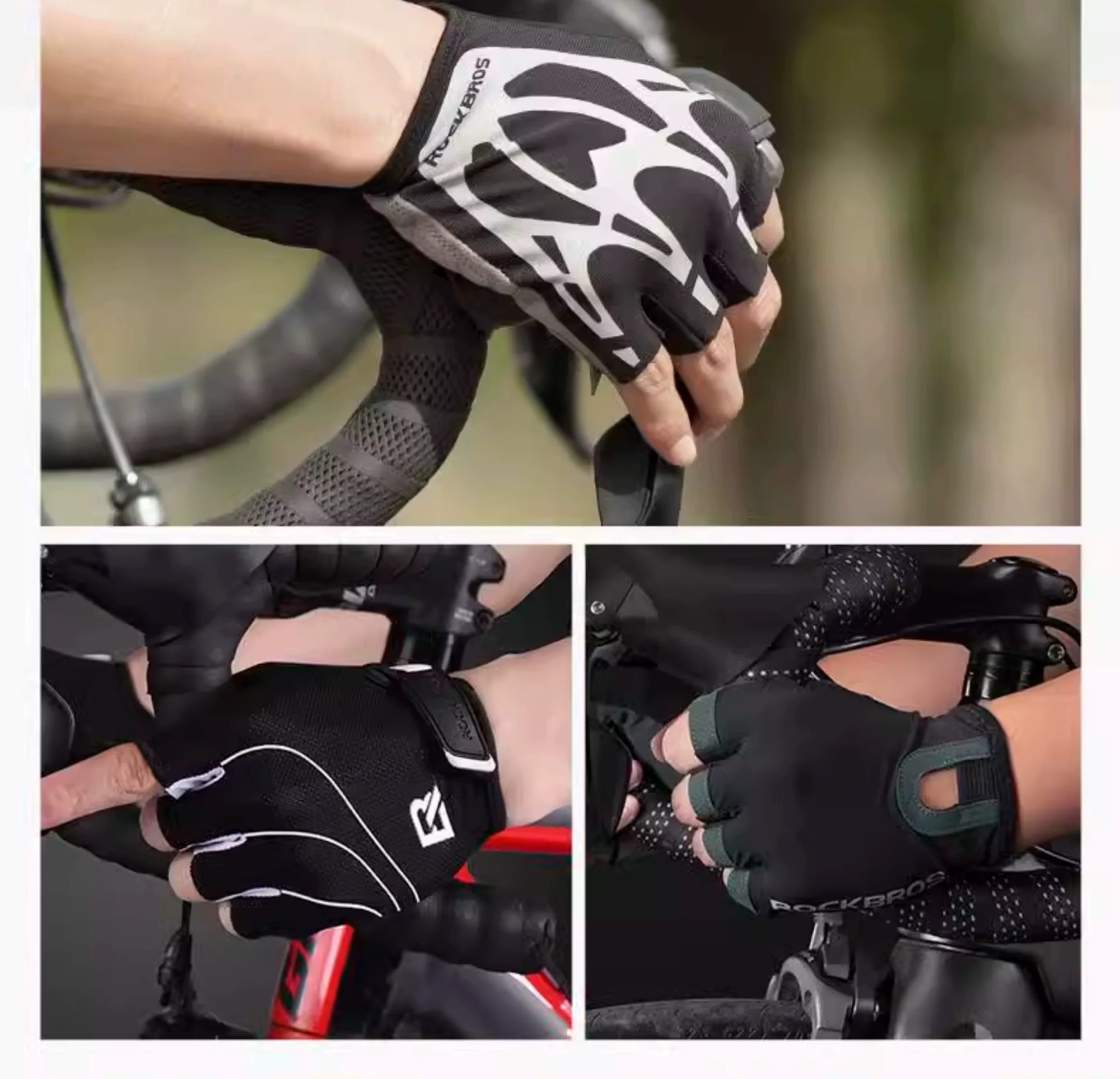 - Găng tay đi xe đạp Rock Brothers mùa xuân hè nửa ngón tay chống sốc chống trượt thể thao ngoài trời găng tay ngắn ngón tay dành cho nam và nữ