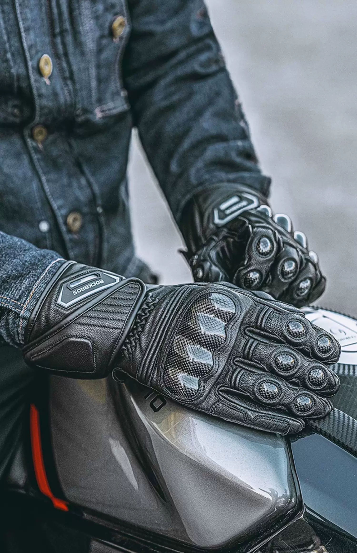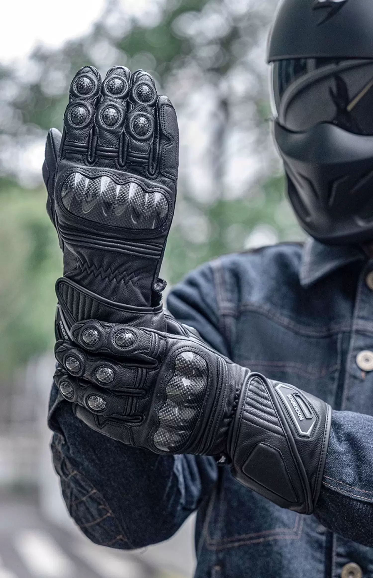 - Găng tay đi xe máy Rock Brothers bằng da cừu nguyên ngón chống gió và ấm áp dành cho nam chống rơi xe máy thiết bị đi xe mùa đông
