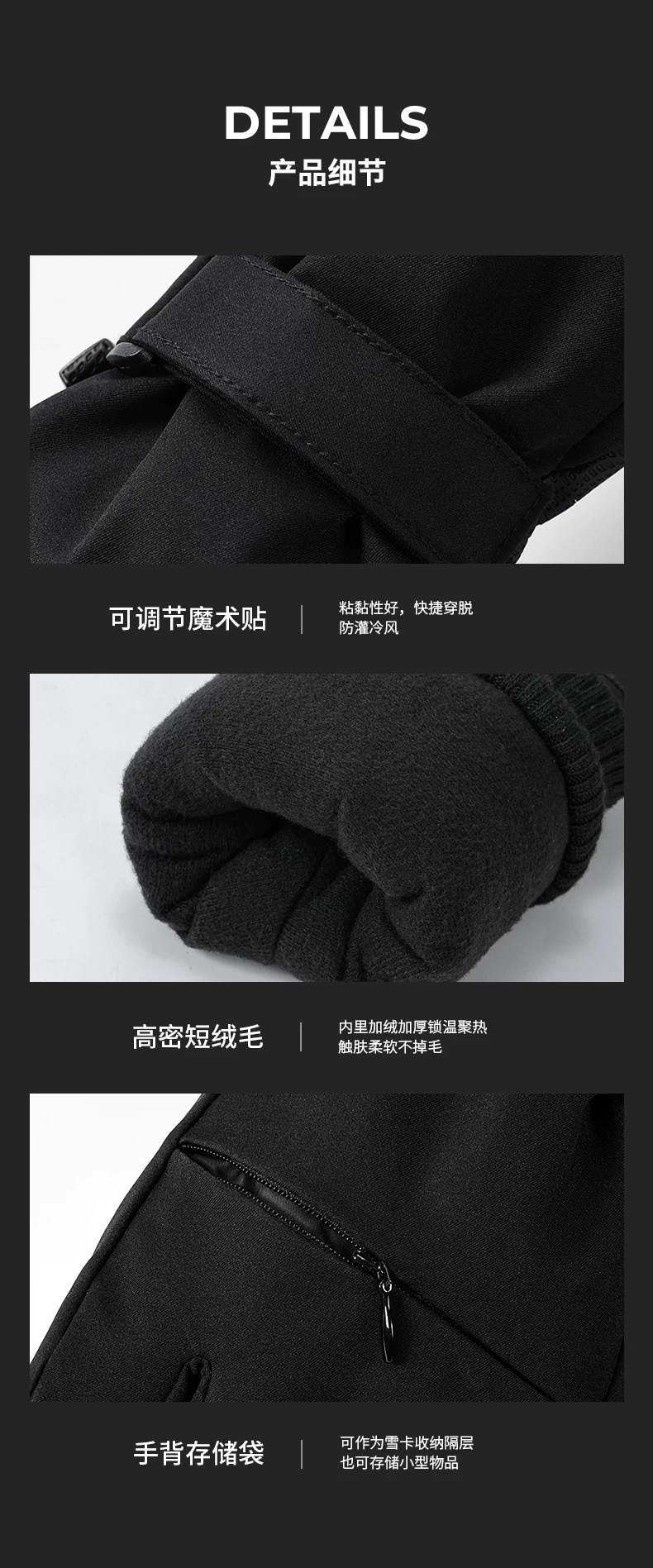 Găng tay trượt tuyết dành cho nữ có lớp lót lông cừu, dày dặn, chống gió, chống thấm nước, leo núi ngoài trời, găng tay ấm áp đi xe đạp tương thích với màn hình cảm ứng dành cho nam giới chuyên nghiệp trong mùa đông.