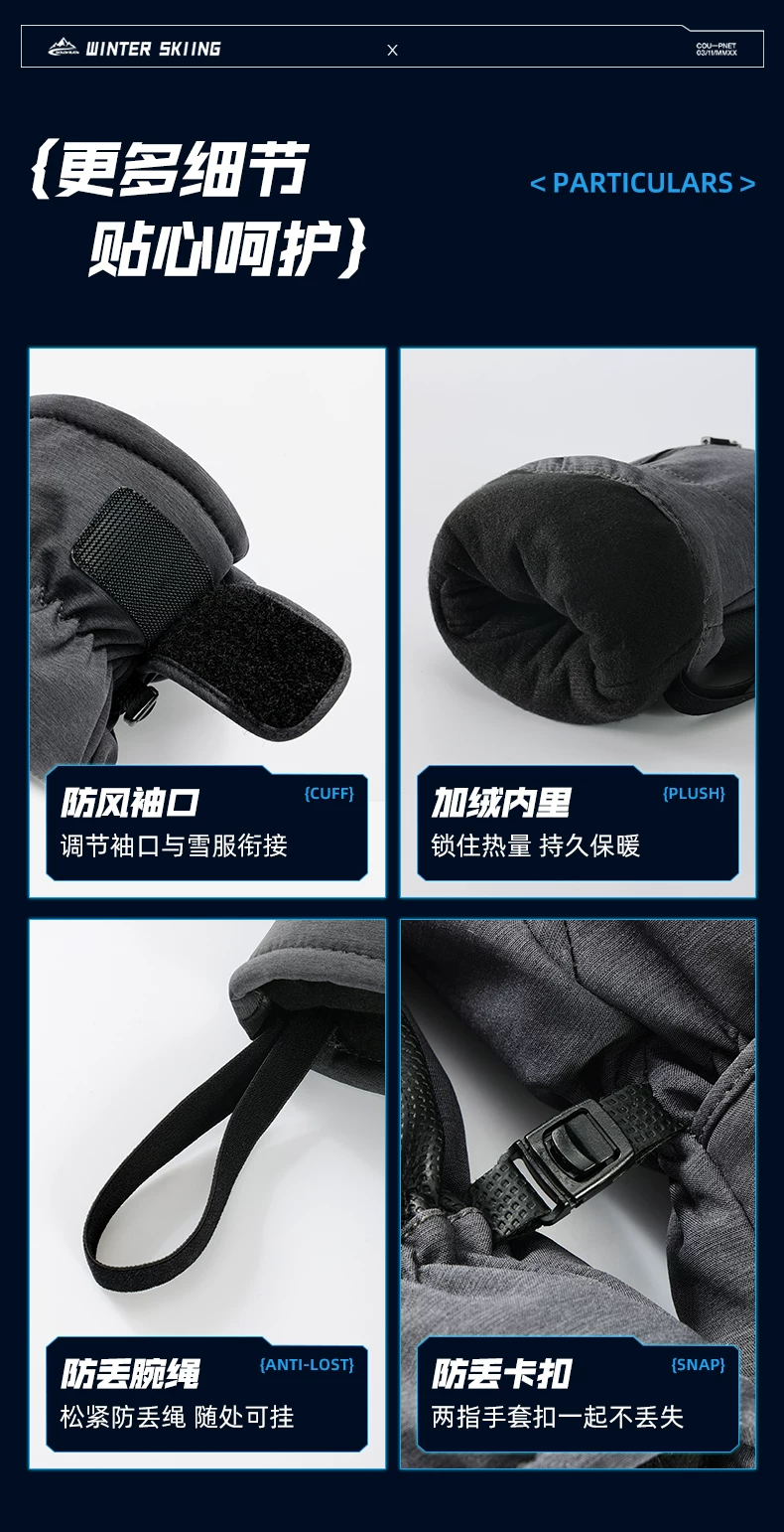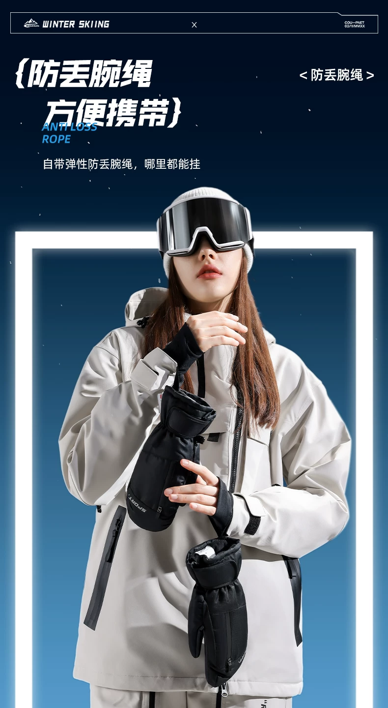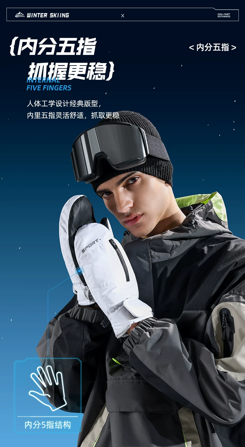 - Găng tay trượt tuyết dành cho ván đơn và ván đôi, găng tay năm ngón chống gió, chống trượt, chống thấm nước chuyên nghiệp dành cho nữ, đi xe đạp ngoài trời, chống gió dành cho nam trong mùa đông.