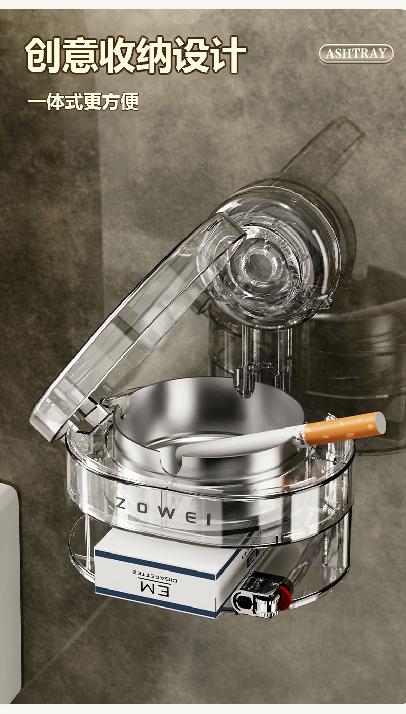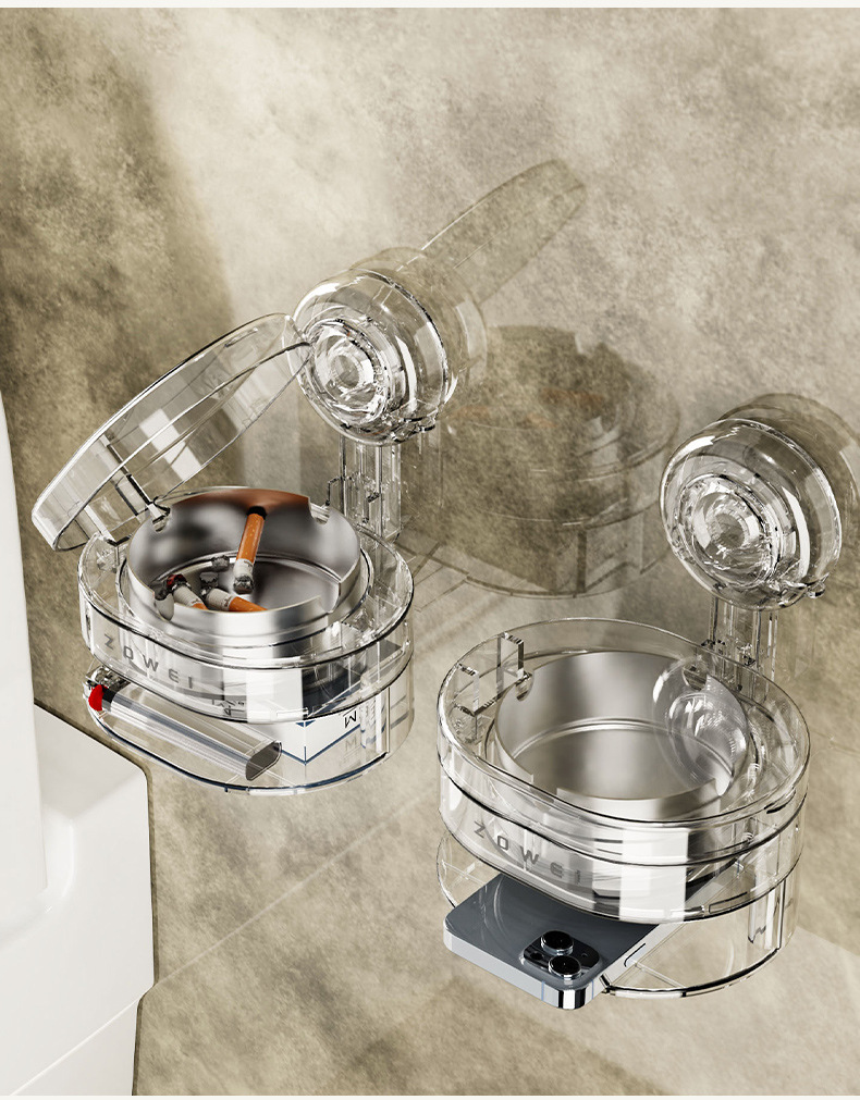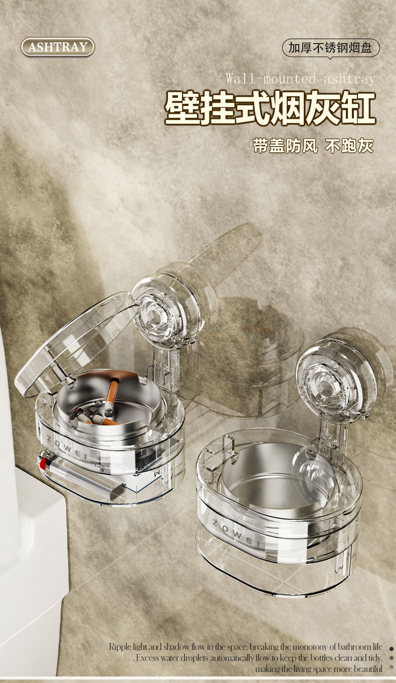 Gạt hút, gạt tàn, hộp đựng thuốc lá ban công nhà vệ sinh, hộp đựng bật lửa, tích hợp bát đựng thuốc lá inox có nắp đậy chống gió