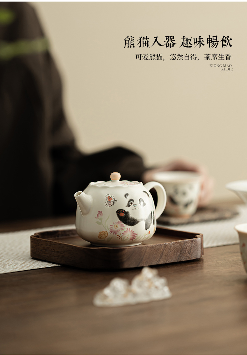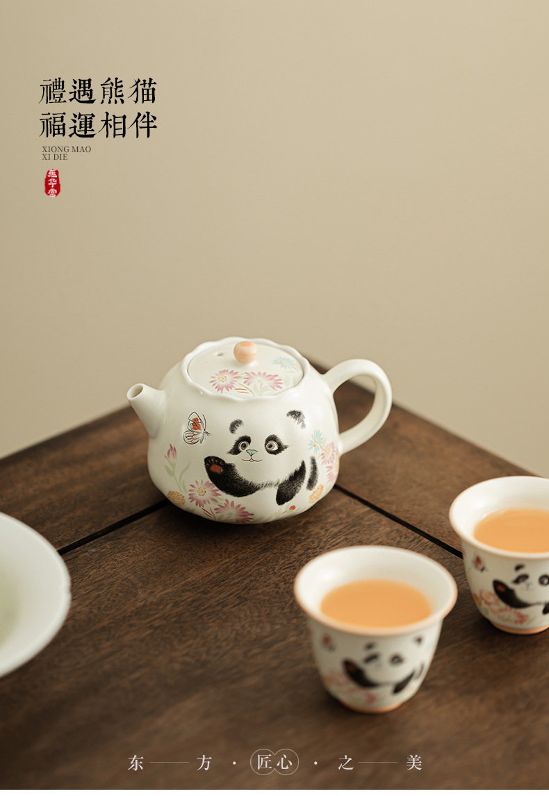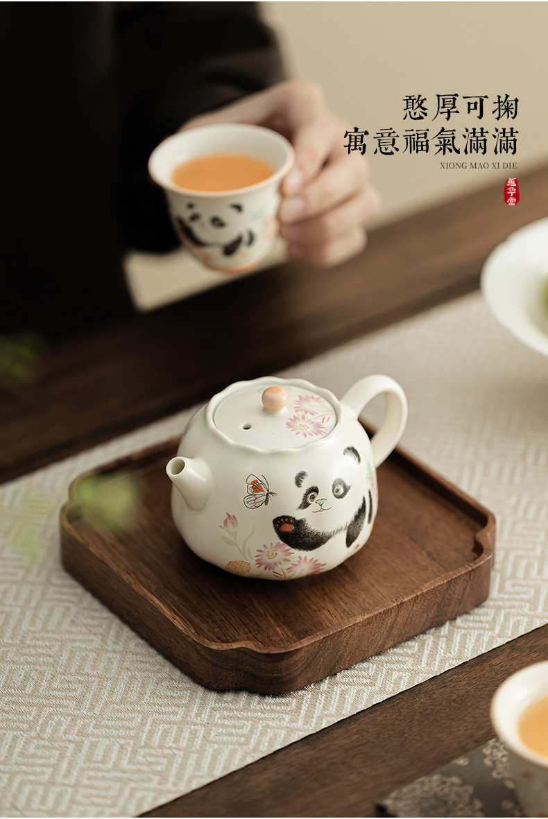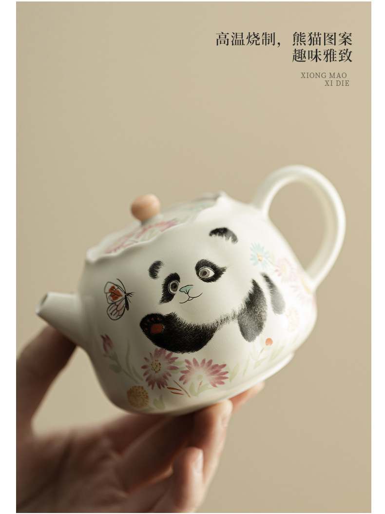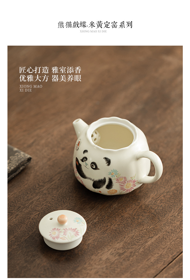 - Gấu trúc chơi bướm miệng ấm trà gốm sứ dễ thương kiểu Trung Quốc vàng Dingyao ấm trà công phu bộ trà lọc ấm trà đơn