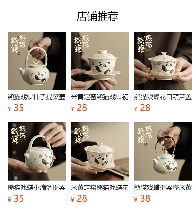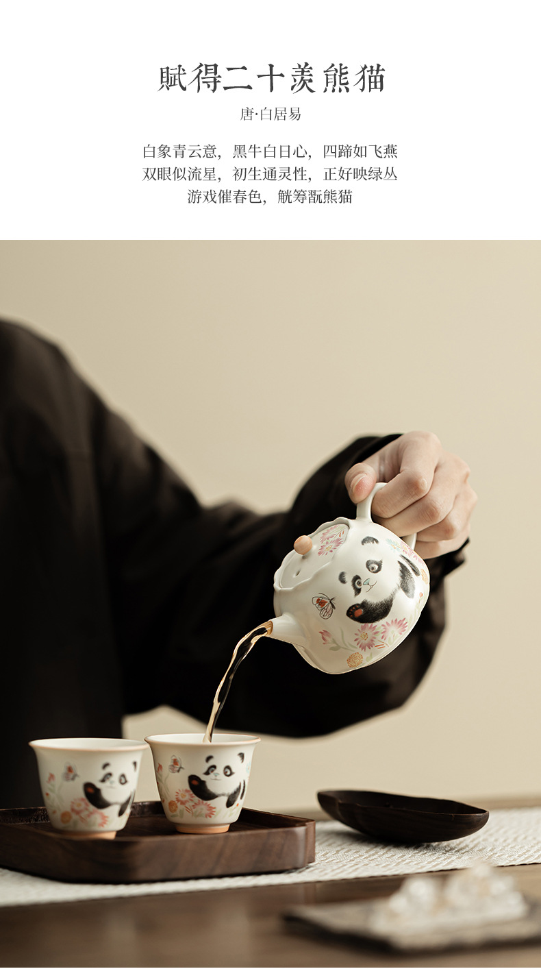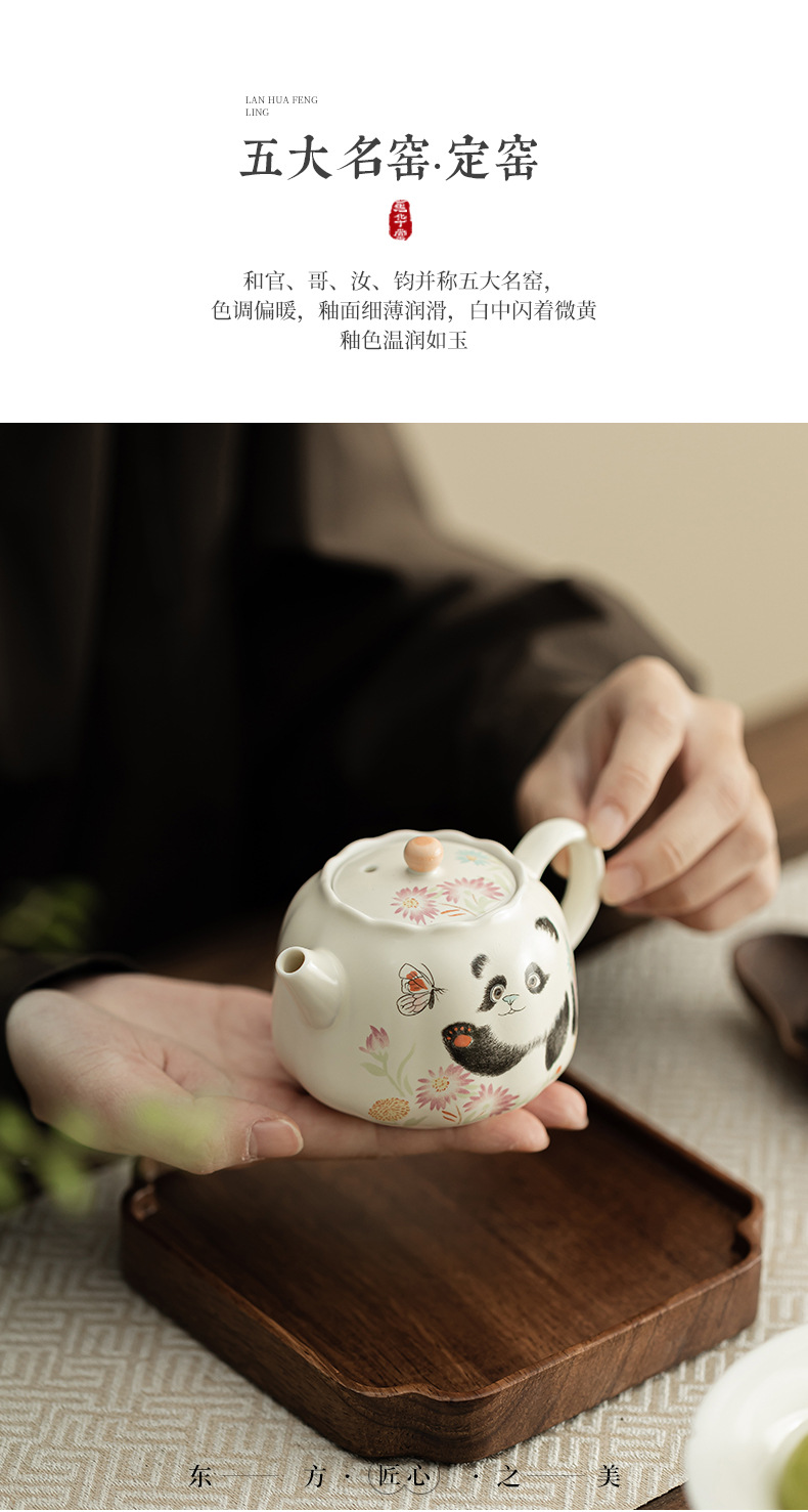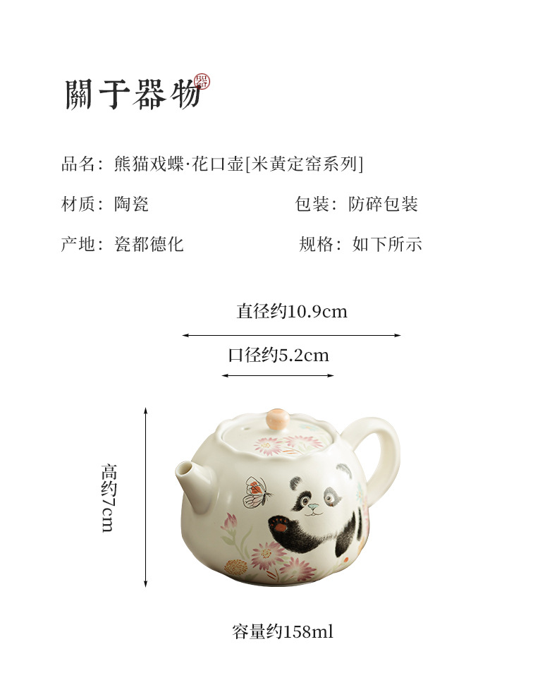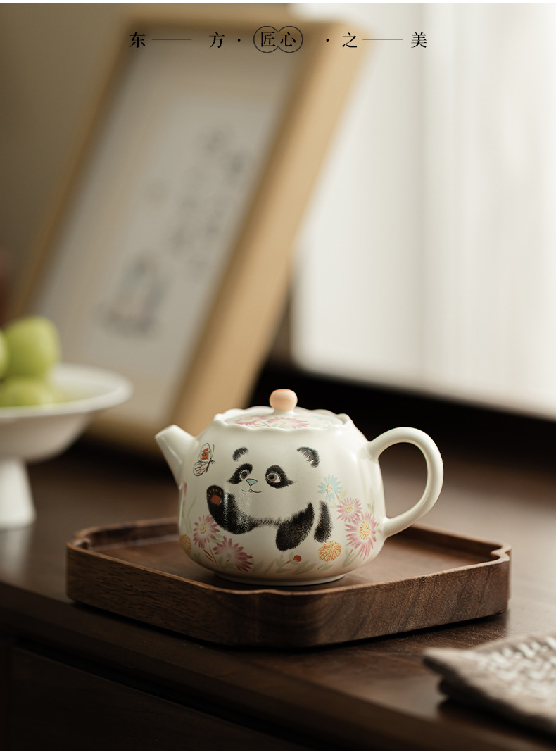- Gấu trúc chơi bướm miệng ấm trà gốm sứ dễ thương kiểu Trung Quốc vàng Dingyao ấm trà công phu bộ trà lọc ấm trà đơn