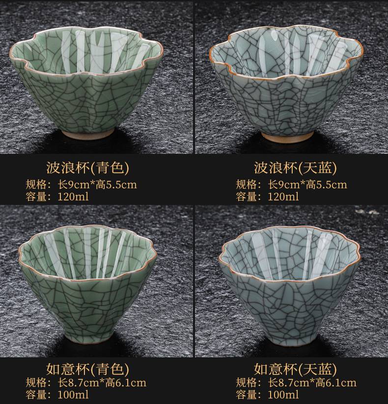Ge Kiln Kung Fu Chén trà chính thức Lò nung lớn nứt băng có thể nâng cốc chủ nhân cá nhân bằng men ngọc mở cốc trà