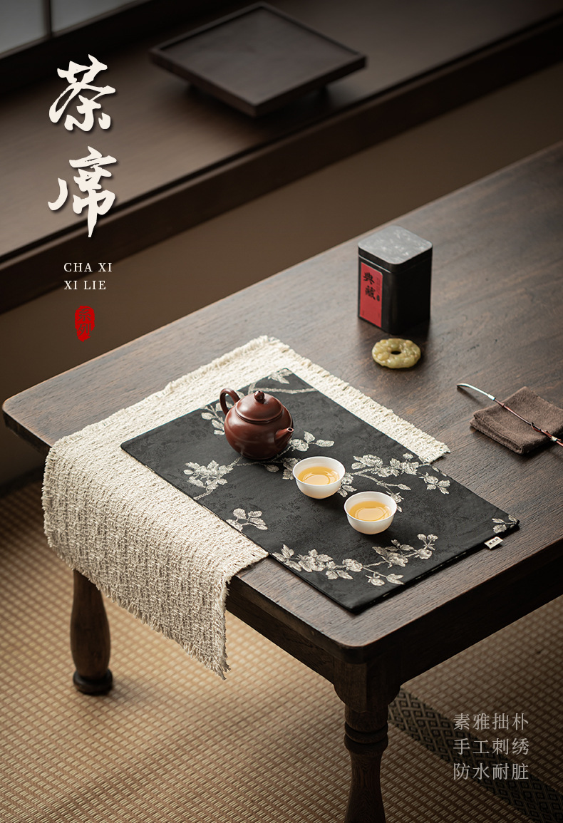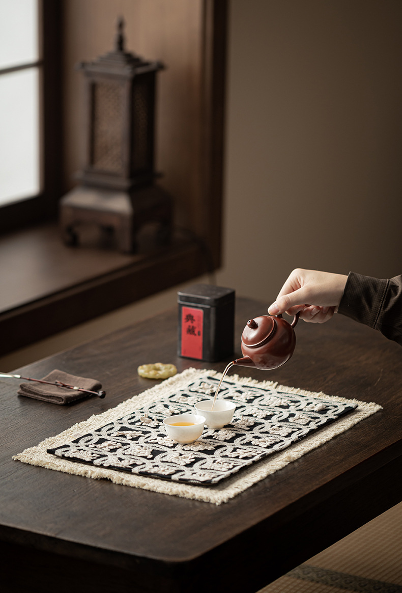 - Ghế trà thổ cẩm kiểu dân tộc có thể dùng hai mặt khăn trà thêu lá cờ trà tách trà cách nhiệt bình trà đệm bàn trà phụ kiện trà đạo