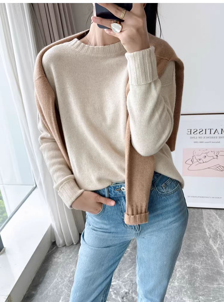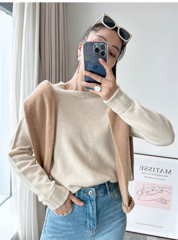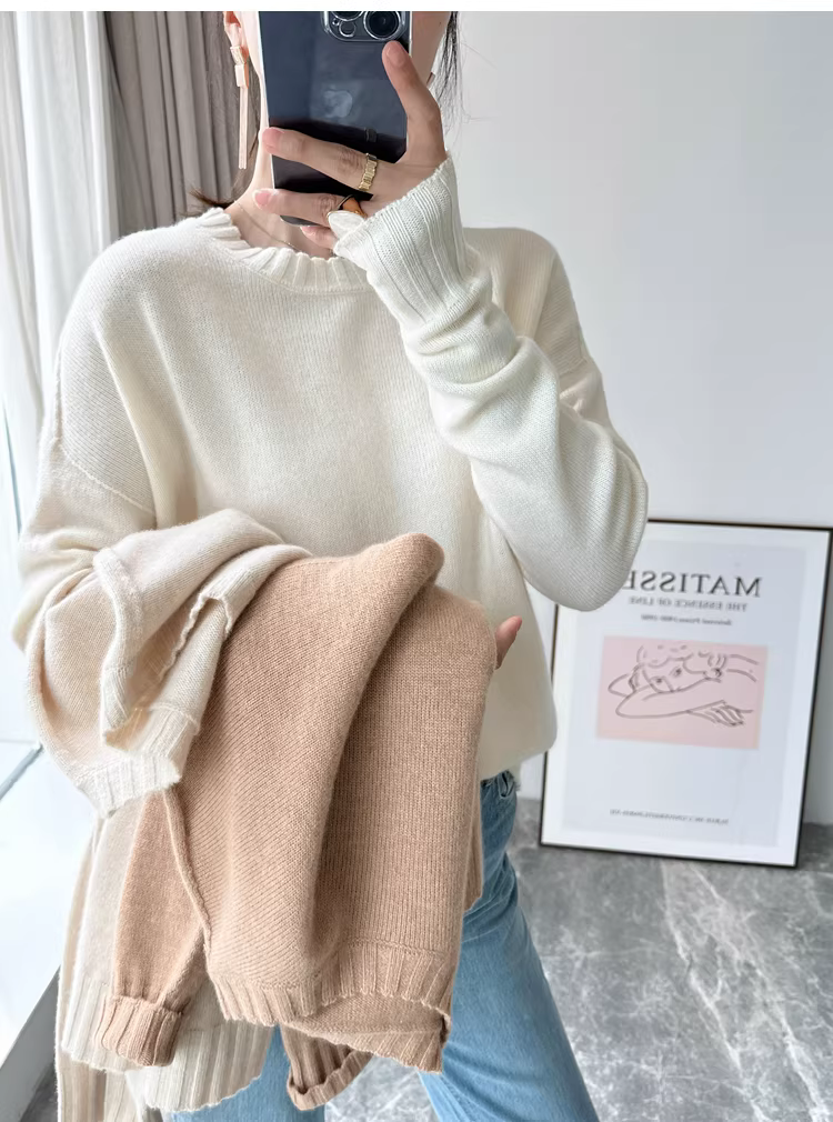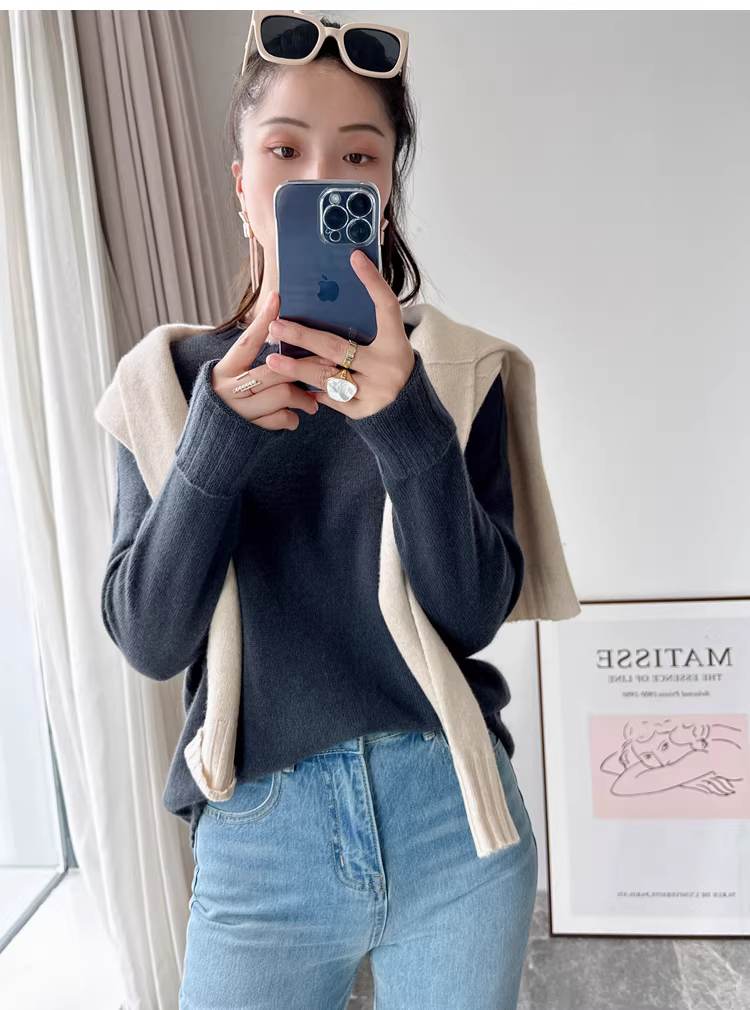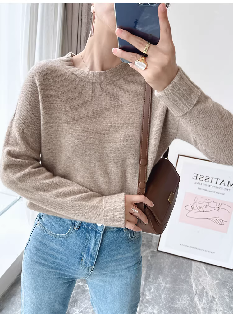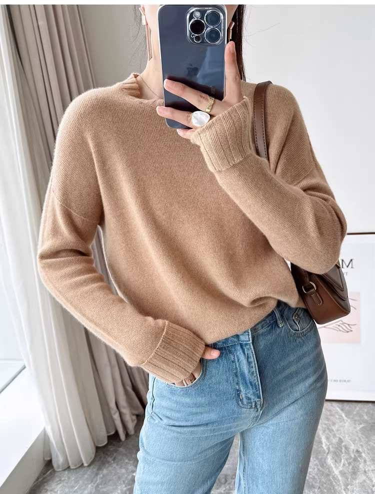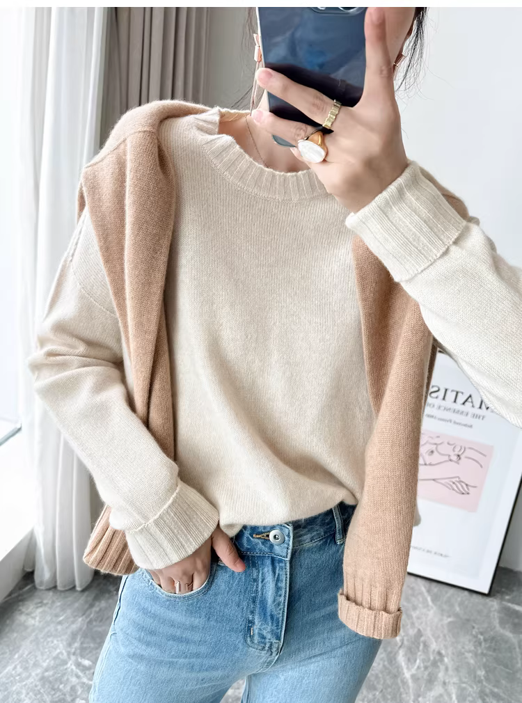 - Giá cực tốt! Áo len cashmere cao cấp mùa thu đông 280g dày dặn ấm áp liền mạch cổ tròn dành cho nữ