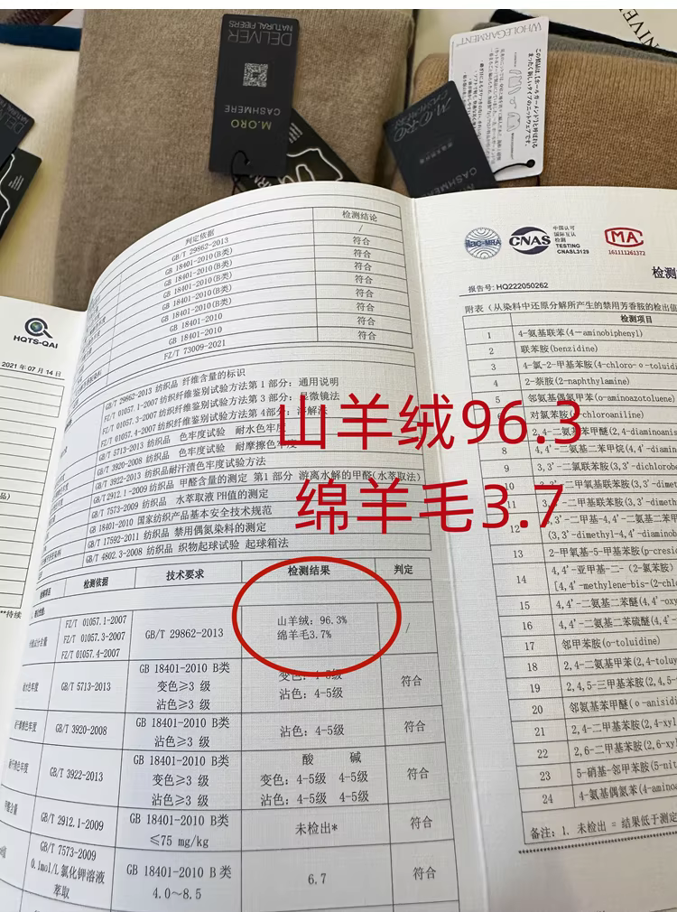 96.3山羊绒 3.7绵羊毛