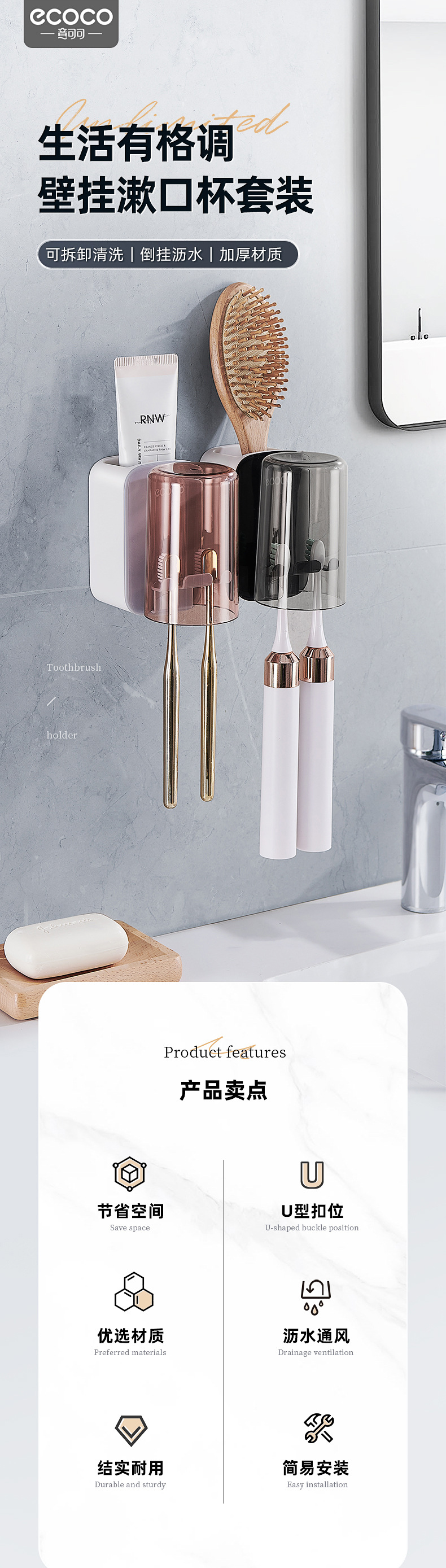 - Giá để bàn chải đánh răng, cốc nước súc miệng không đục lỗ, cốc đựng đồ treo tường, Cốc đánh răng, giá để bàn chải điện treo tường