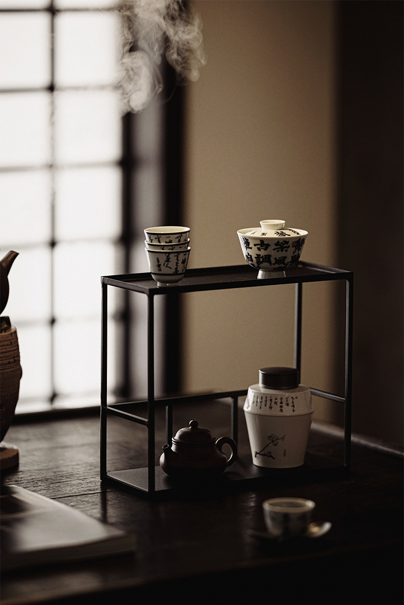 Giá để bàn trà sắt rèn Da'antang Giá để tách trà Giá để đồ Bogu Bộ trà Kung Fu lưu trữ Giá trưng bày để bàn nhiều tầng