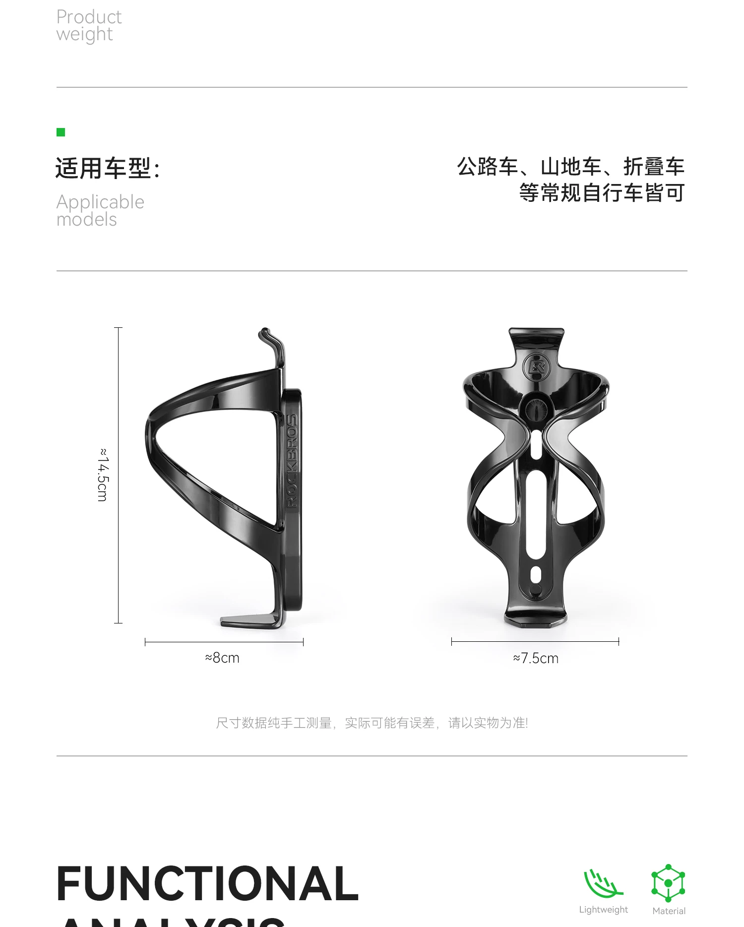 - Giá để bình nước xe đạp Rock Brothers chất liệu nhựa PC, dành cho xe đạp đường trường, xe đạp leo núi, giá đỡ bình nước xe đạp, phụ kiện