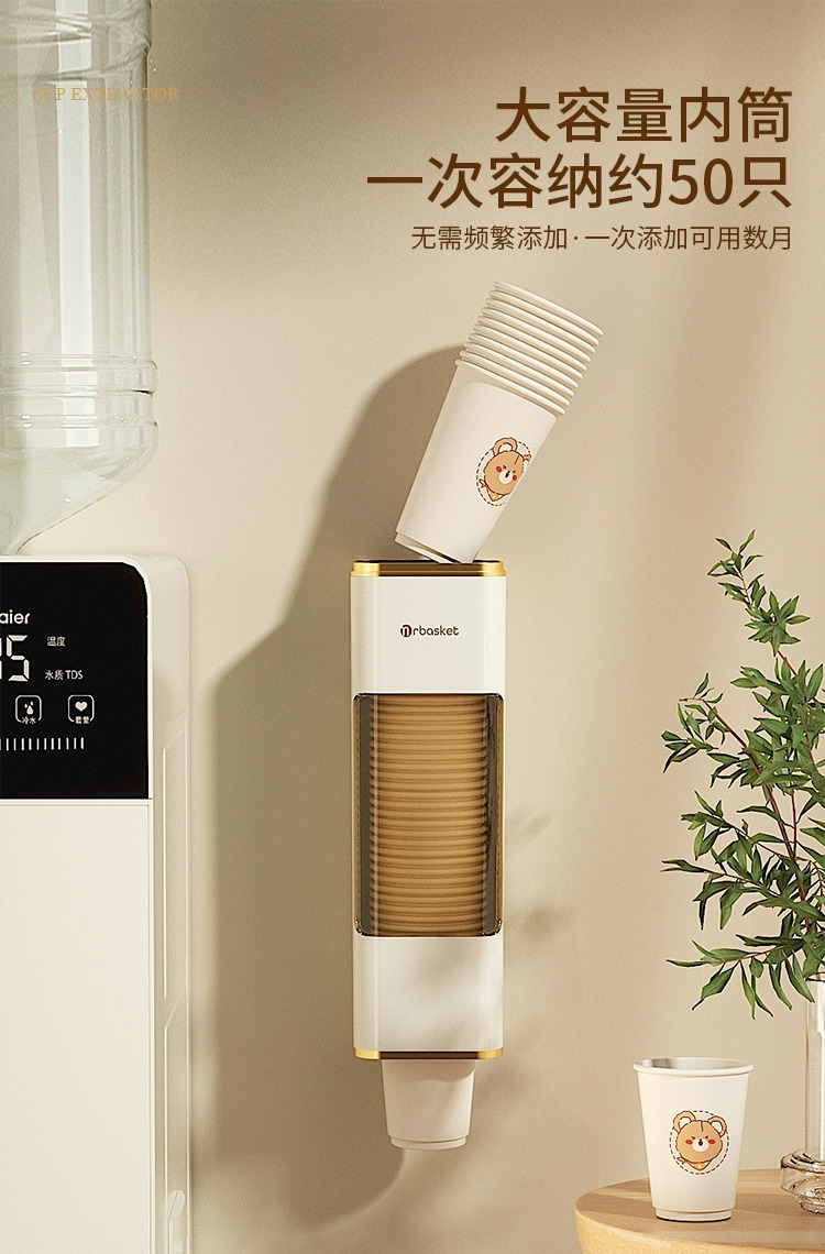 Giá để cốc dùng một lần, máy lấy cốc tự động, giá để cốc giấy chống bụi treo tường không đục lỗ, máy lọc nước, máy đựng đồ gia dụng