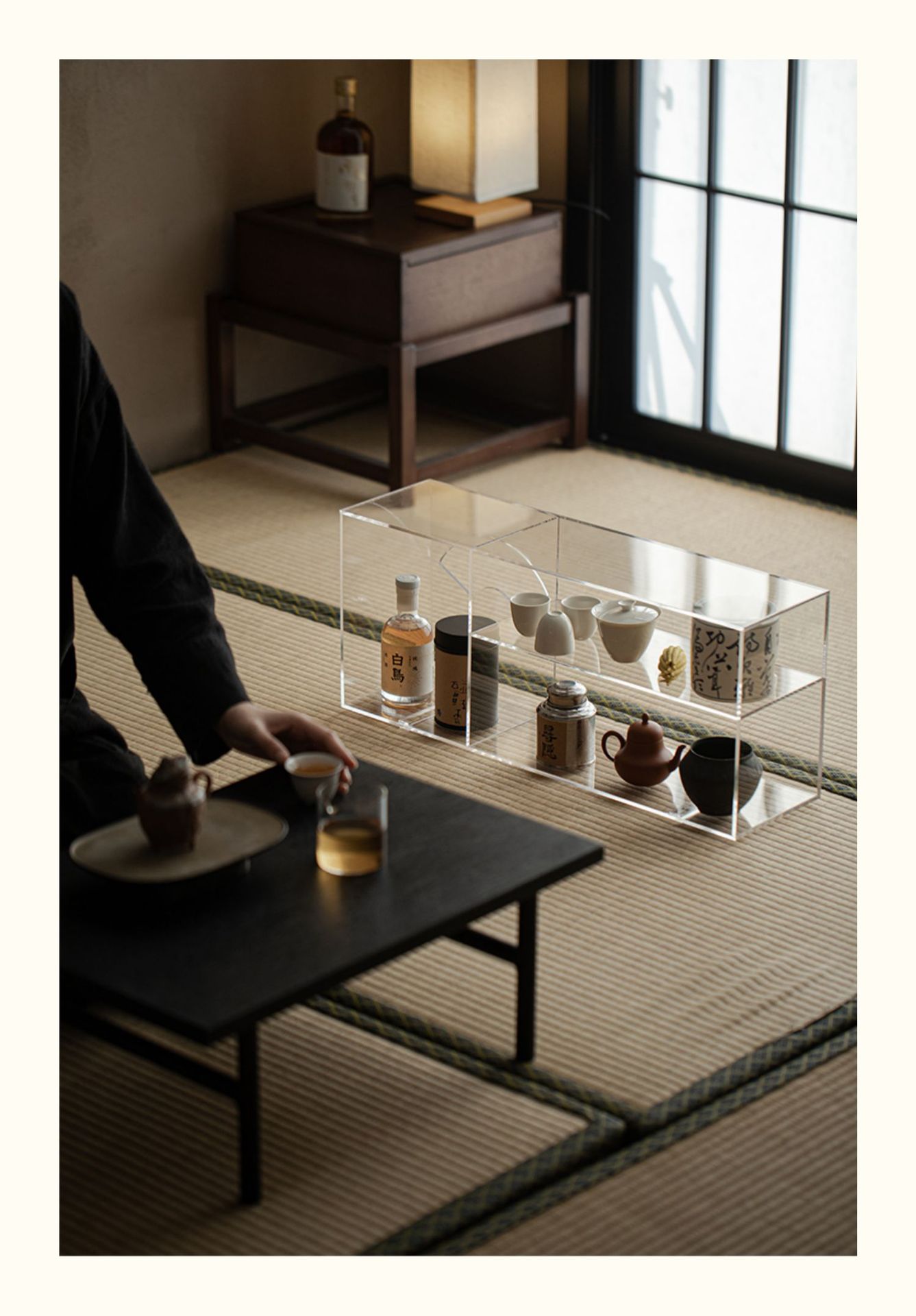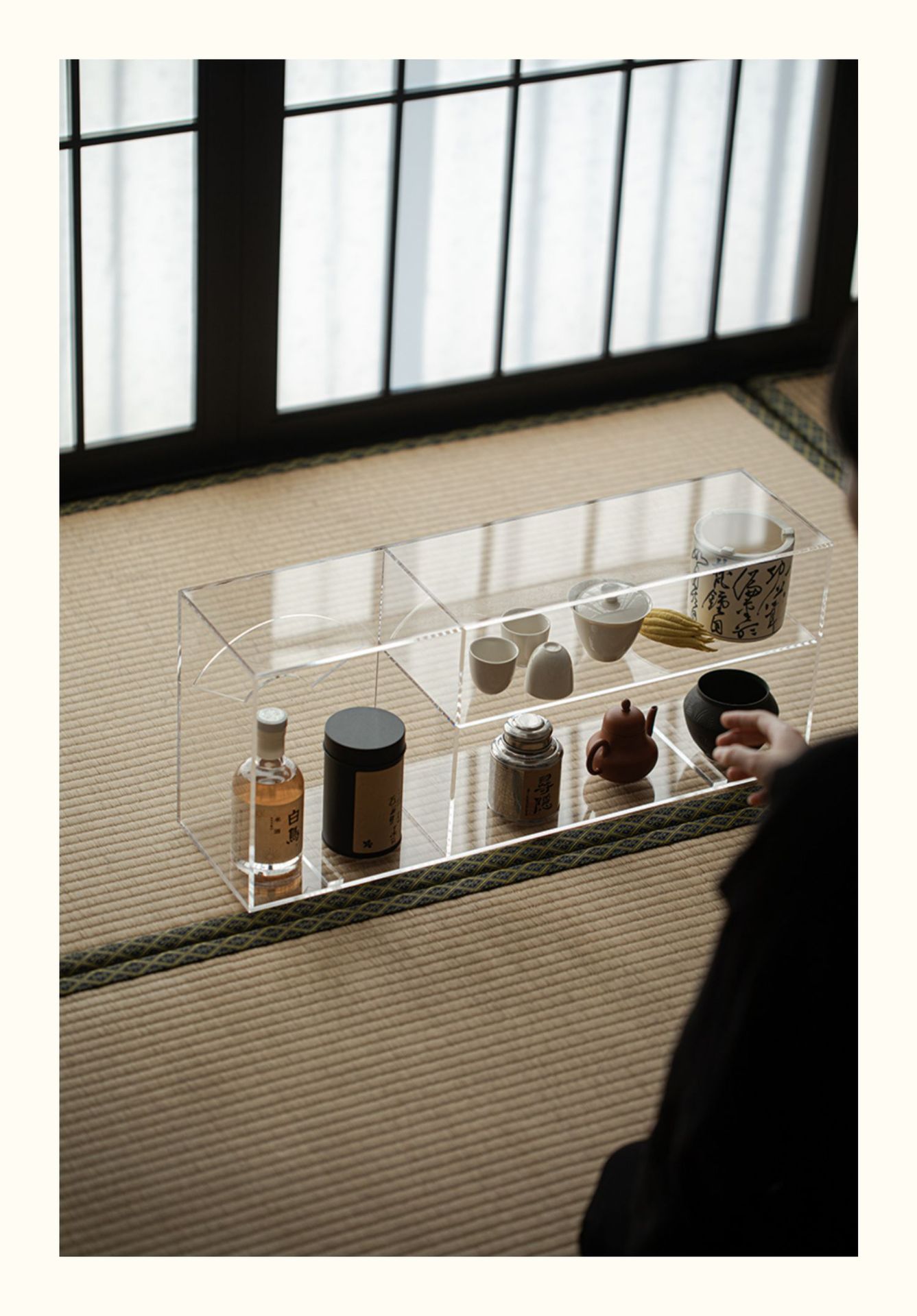 - Giá để đồ Acrylic trong suốt để đồ Bộ trà Kung Fu ấm trà có nắp chén trà trưng bày Kệ Bogu để bàn