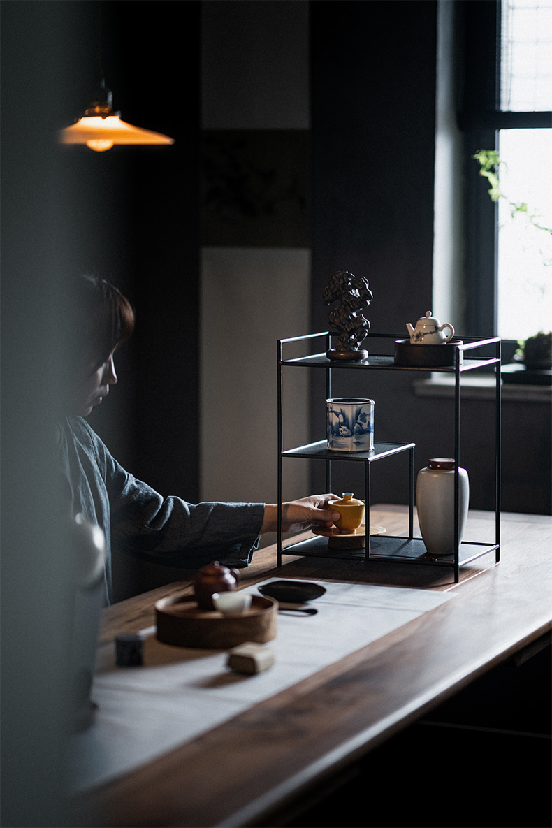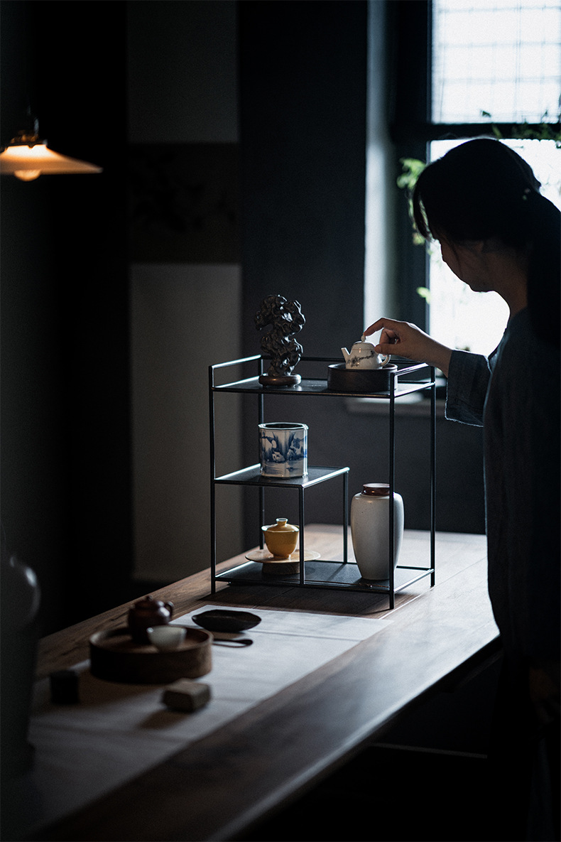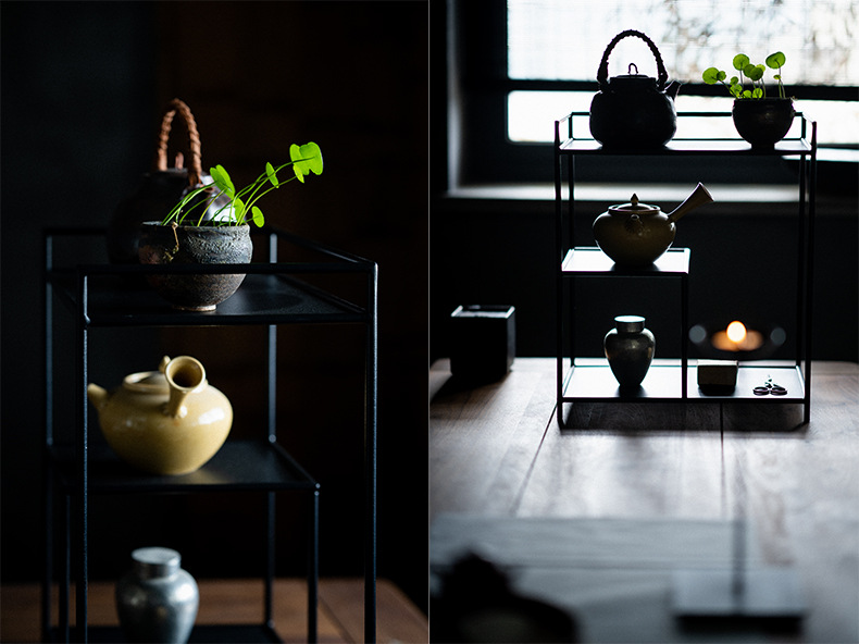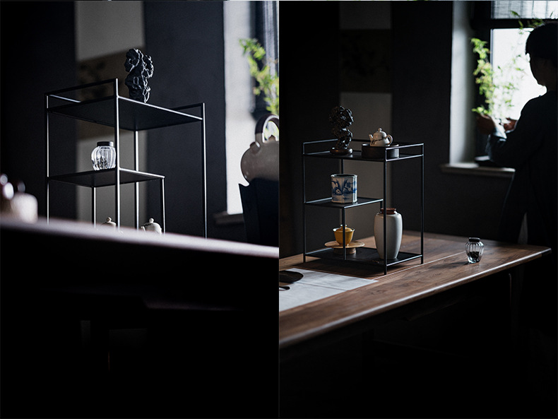 - Giá để đồ Bộ ấm trà kiểu Trung Quốc mới của Da'antang, giá trưng bày, Giá sắt, tủ đựng ấm trà, giá bố trí phòng trà Thiền