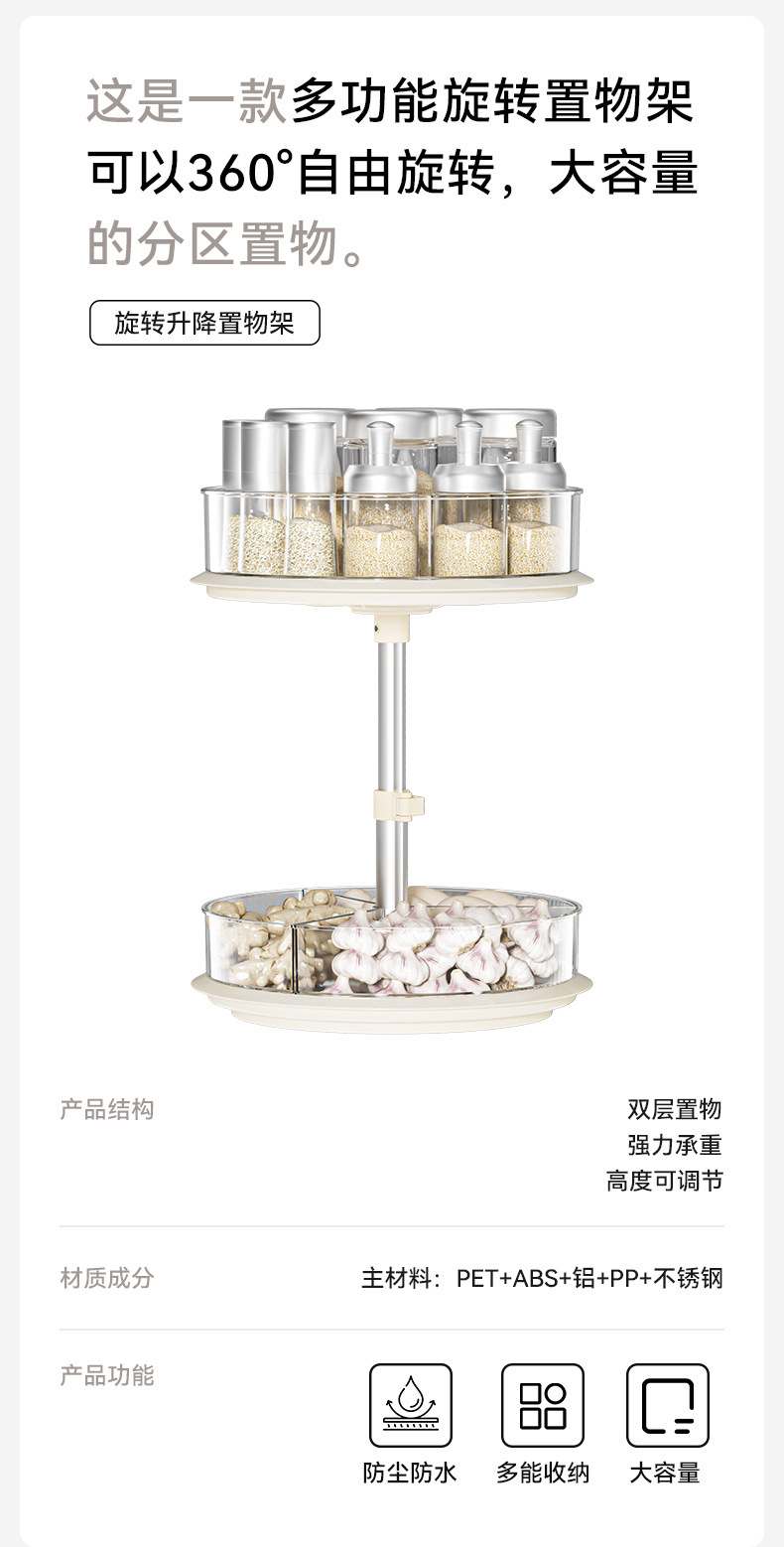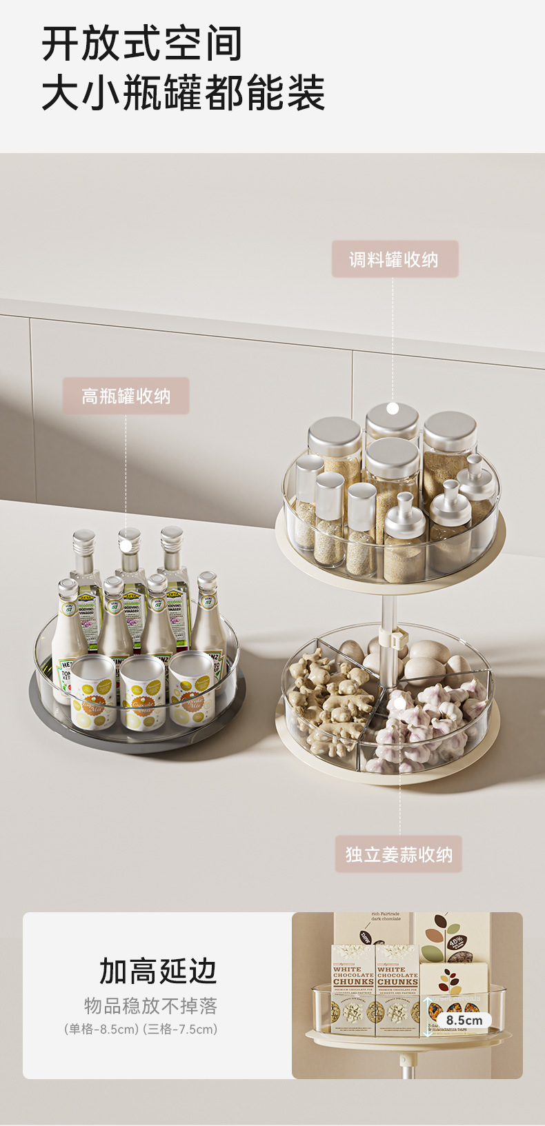 Giá để đồ gia vị xoay, mặt bàn bếp, dầu đa chức năng, muối, nước sốt và giấm, gia vị, hộp đựng đồ Daquan, bàn xoay