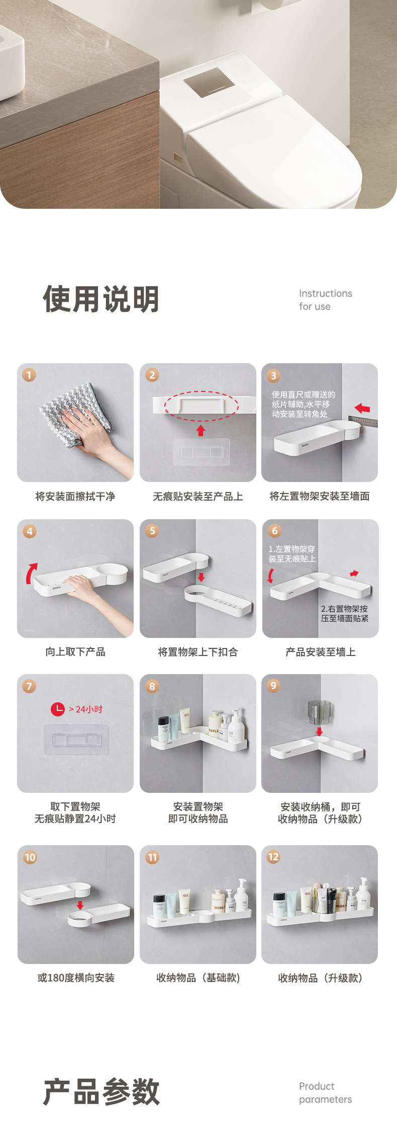 - Giá để đồ góc phòng tắm không đục lỗ trong nhà vệ sinh rửa tay giá để đồ tam giác treo tường