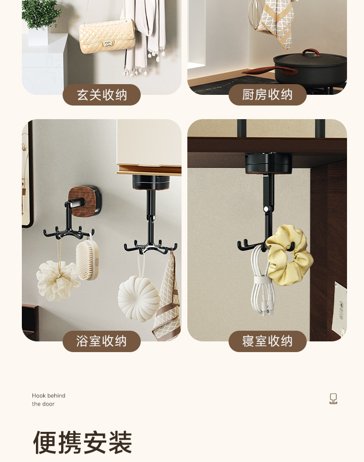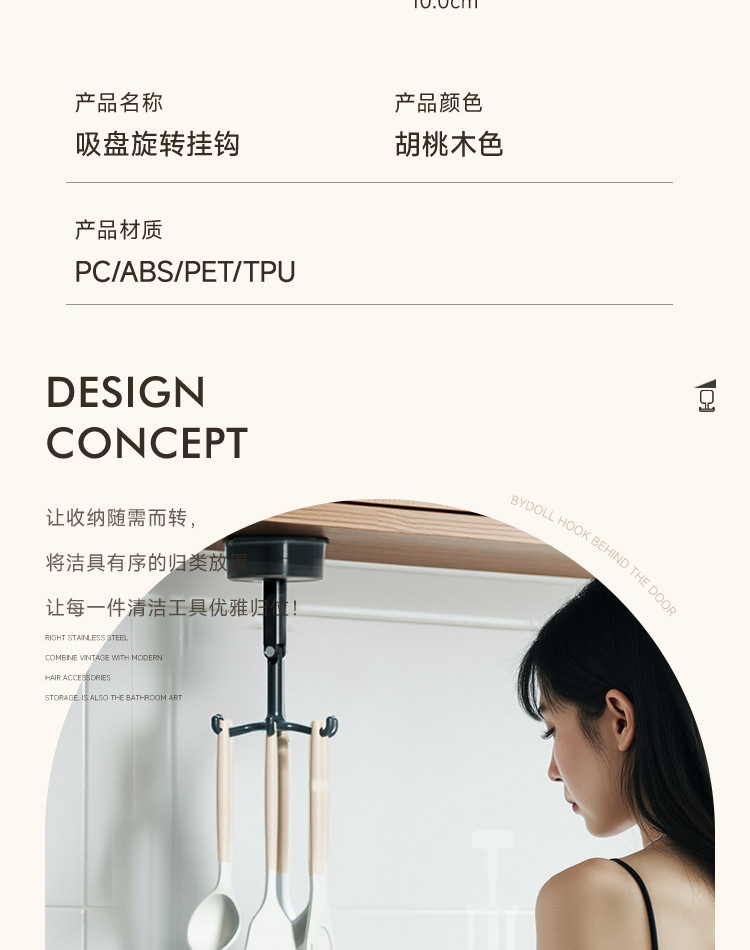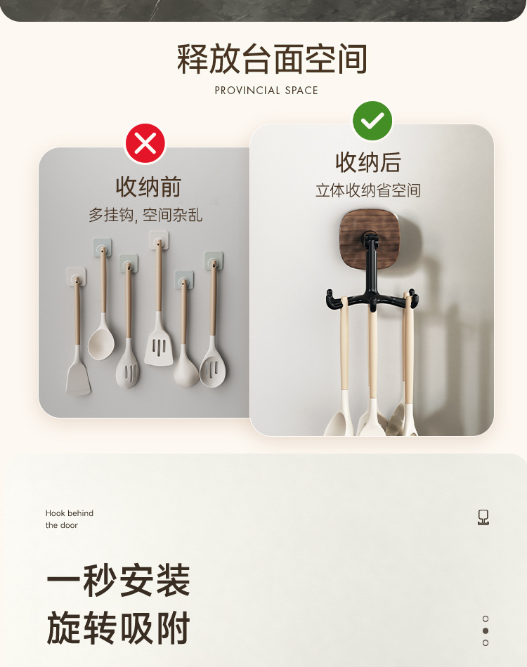- Giá để đồ nhà bếp xoay hút chân không gắn tường, giá để đồ, móc treo thìa, xẻng, không cần khoan