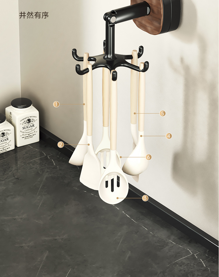 Giá để đồ nhà bếp xoay hút chân không gắn tường, giá để đồ, móc treo thìa, xẻng, không cần khoan