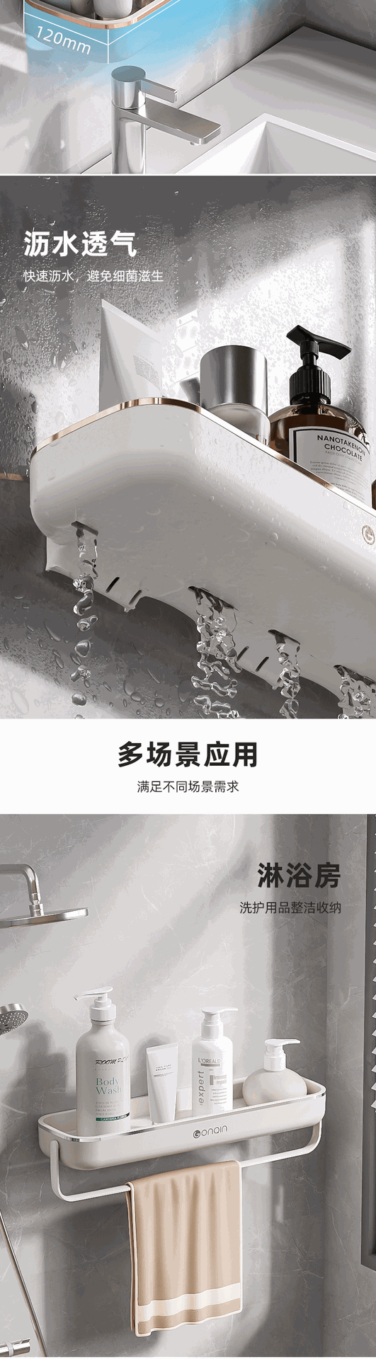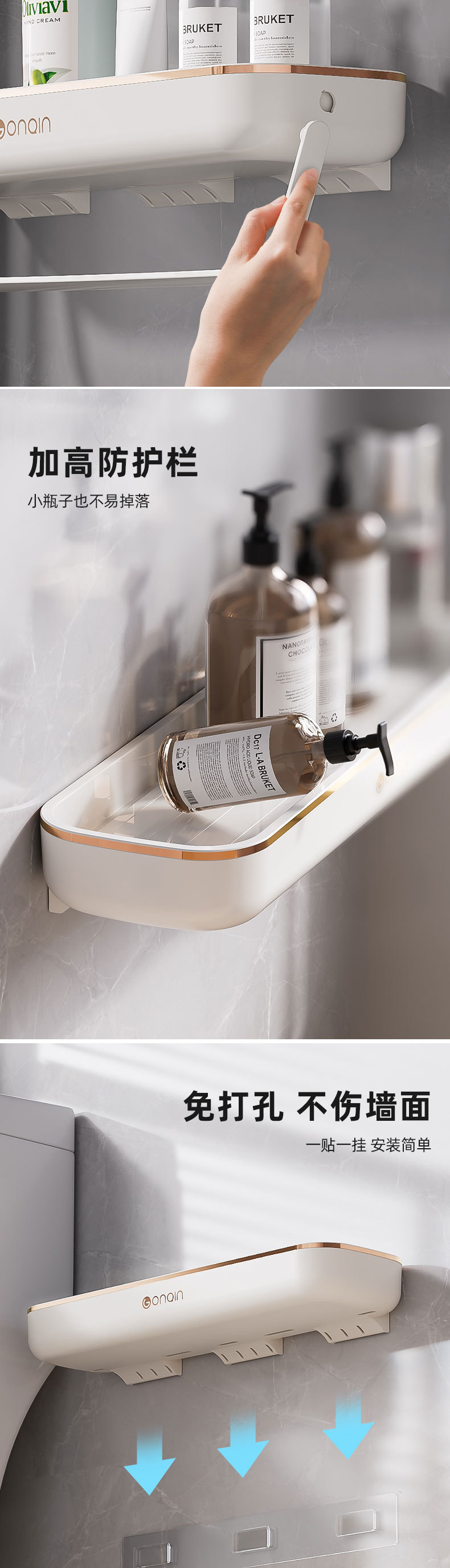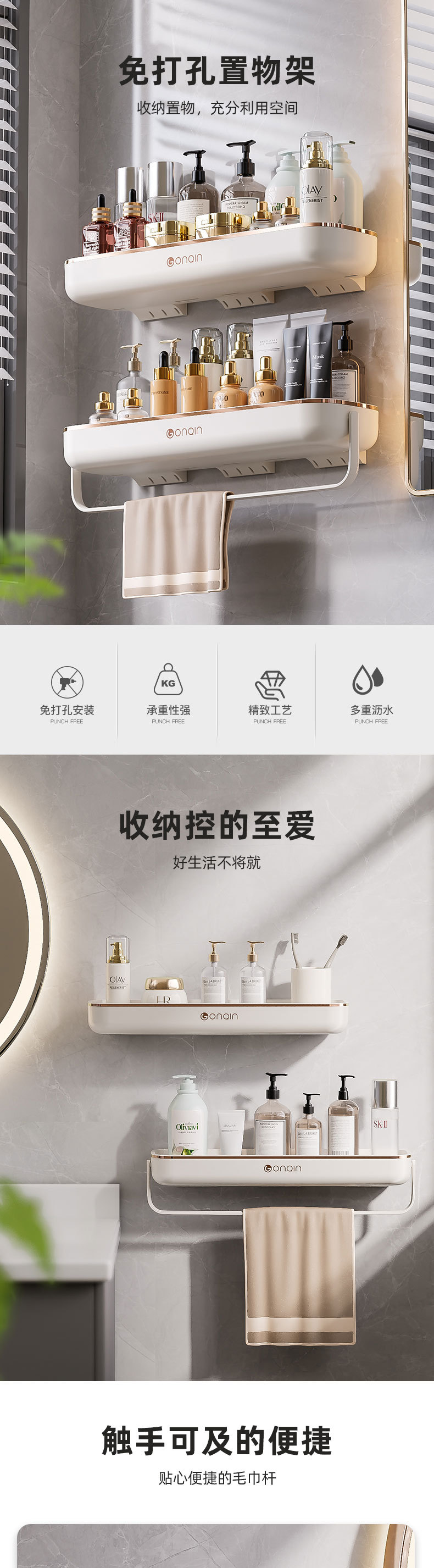 - Giá để đồ phòng tắm, giá treo khăn không đục lỗ, giá để đồ phòng tắm treo tường, giá để đồ phòng tắm