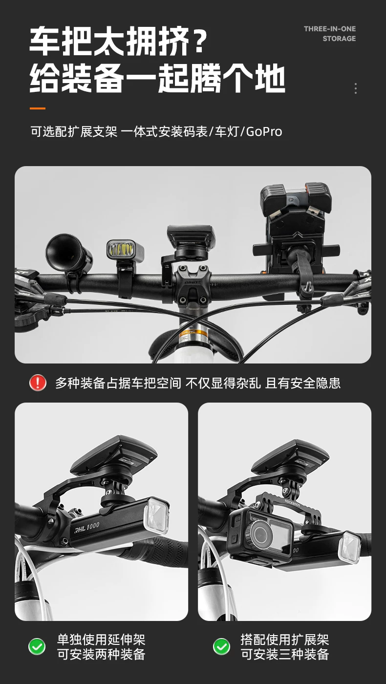 - Giá đỡ đèn xe đạp, tay lái mở rộng, mở rộng đèn trước, giá đỡ gắn máy tính, camera thể thao, phụ kiện