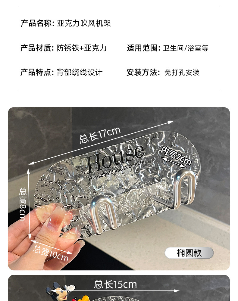 - Giá đỡ máy sấy tóc Acrylic cho phòng tắm gia dụng không đục lỗ Giá để đồ Dyson treo tường máy sấy tóc để đồ