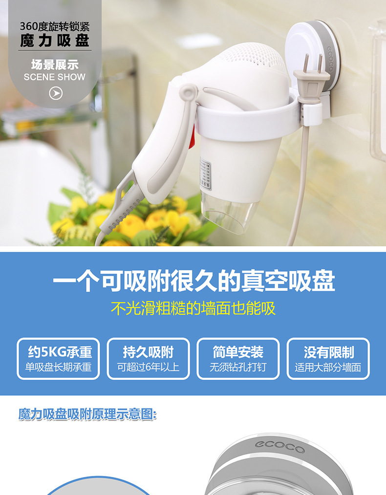 - Giá đỡ máy sấy tóc cốc hút ca cao Ý, Giá Để Máy Sấy Tóc, giá để đồ trong phòng tắm, Giá đỡ máy hút treo tường Cốc hút