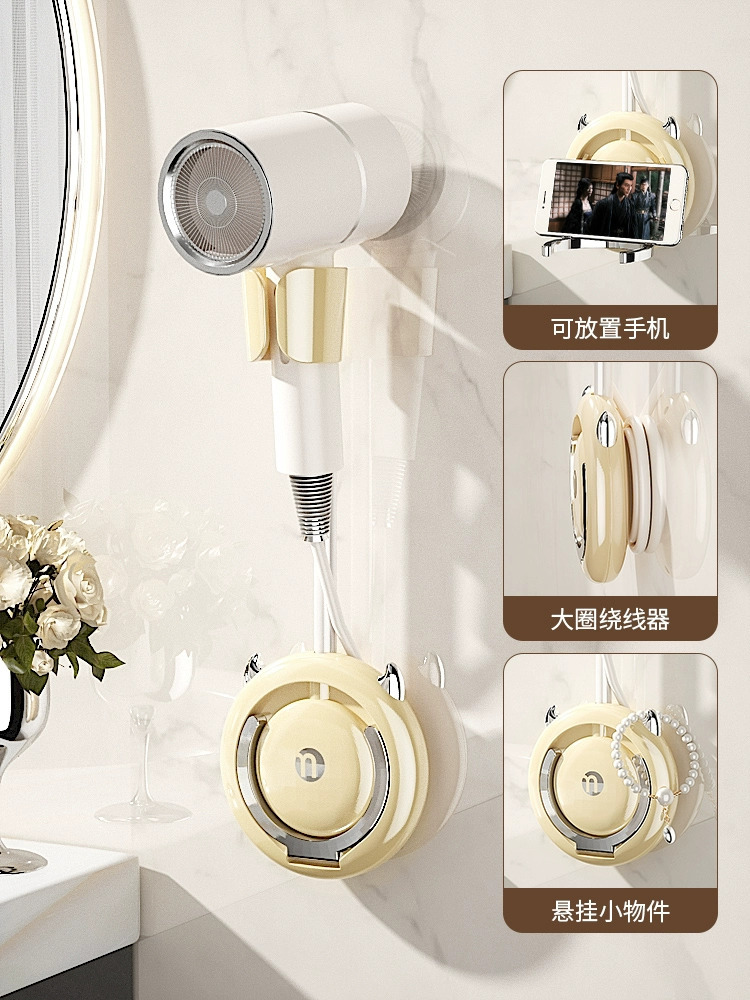 Giá đỡ máy sấy tóc lười không cầm tay, rảnh tay, treo tường không đục lỗ, giá đỡ máy sấy tóc điện phòng tắm