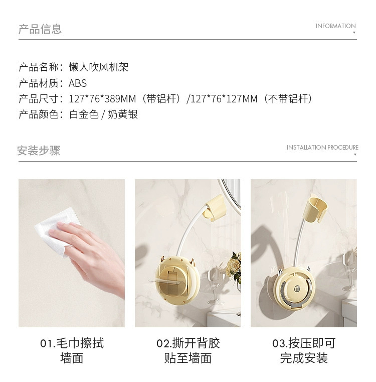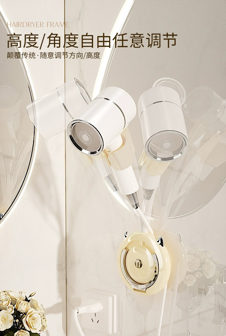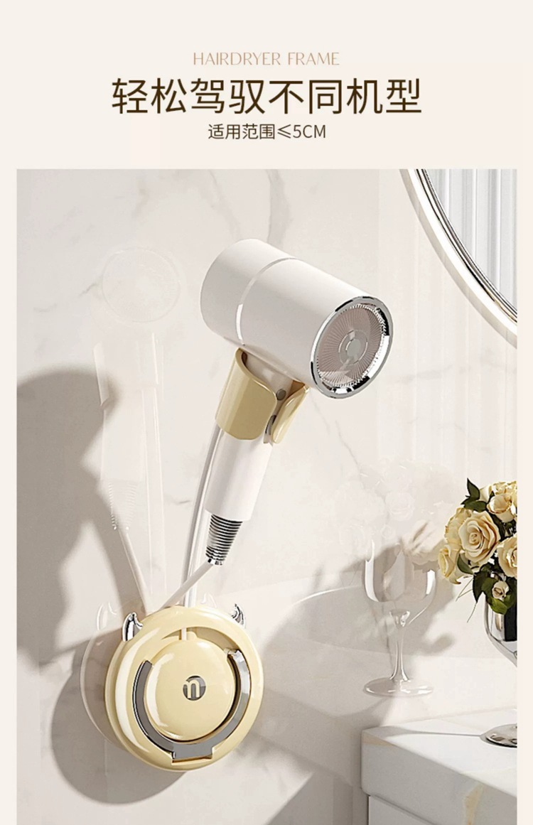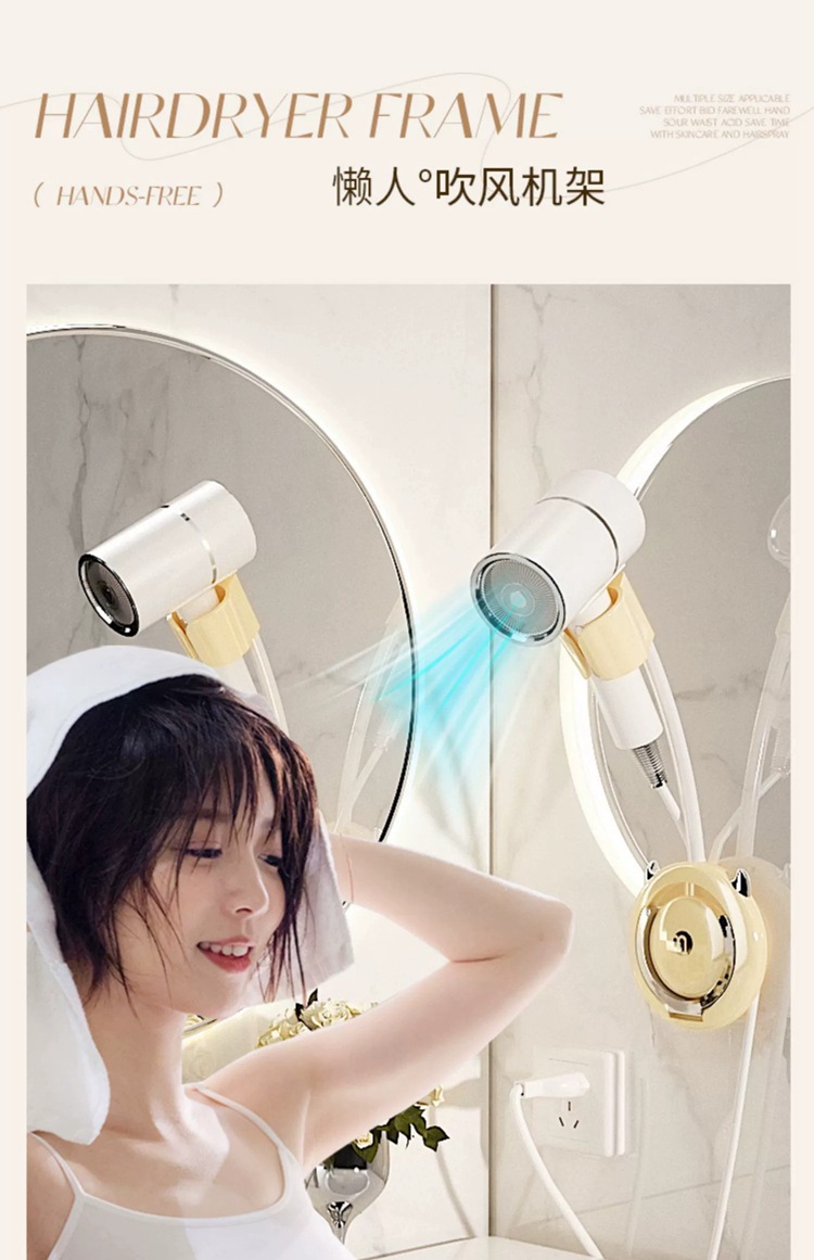 - Giá đỡ máy sấy tóc lười không cầm tay, rảnh tay, treo tường không đục lỗ, giá đỡ máy sấy tóc điện phòng tắm