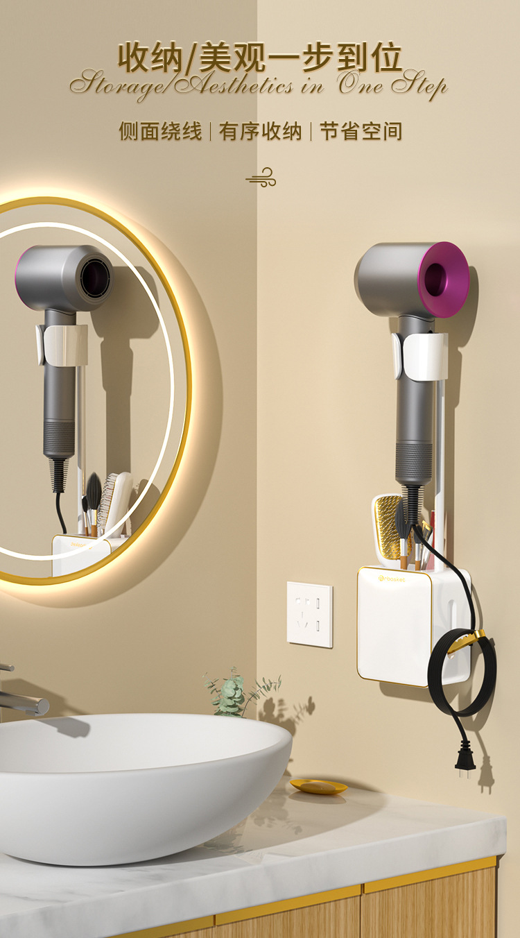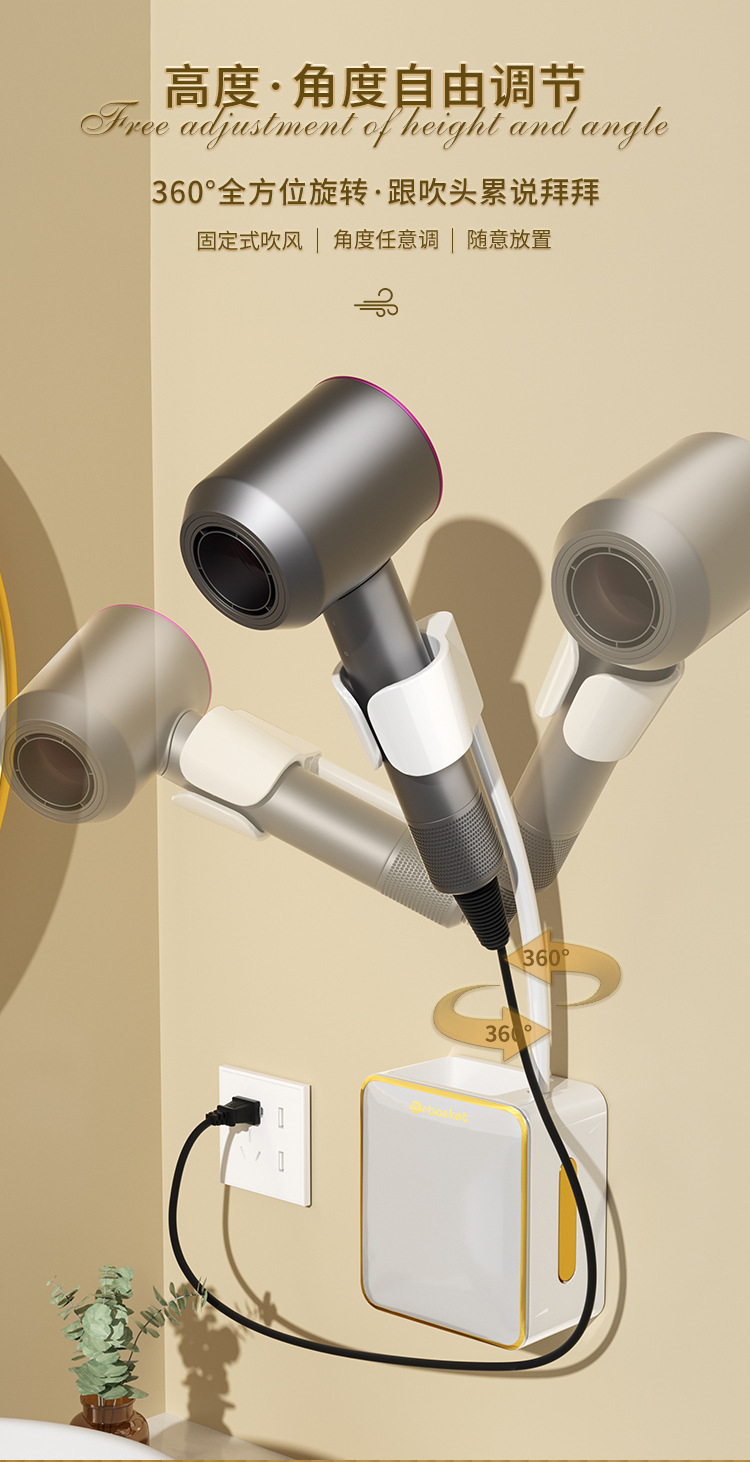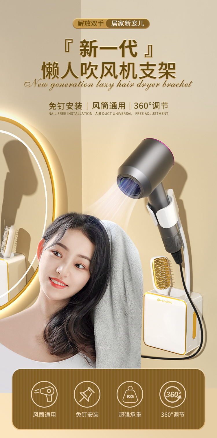 - Giá đỡ máy sấy tóc lười nhà vệ sinh, Máy Sấy Tóc không tay, Giá đỡ máy sấy tóc rảnh tay, treo tường không cần đục lỗ