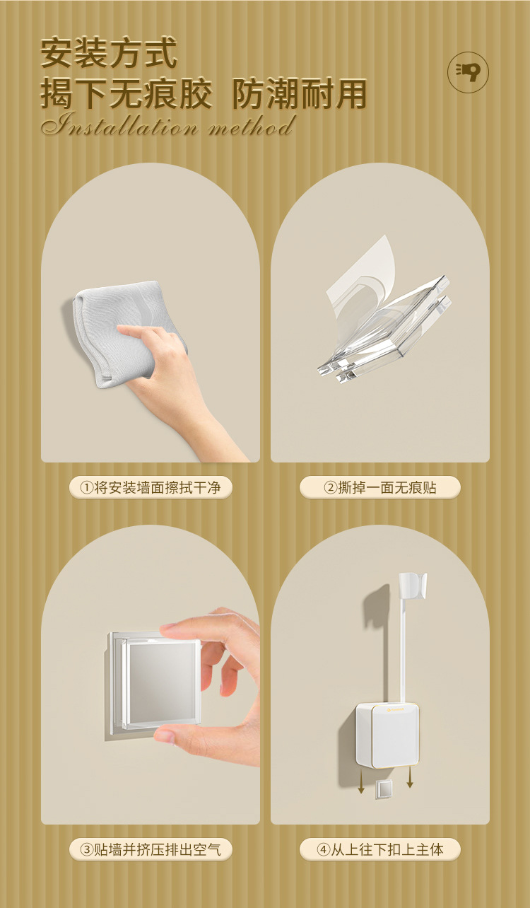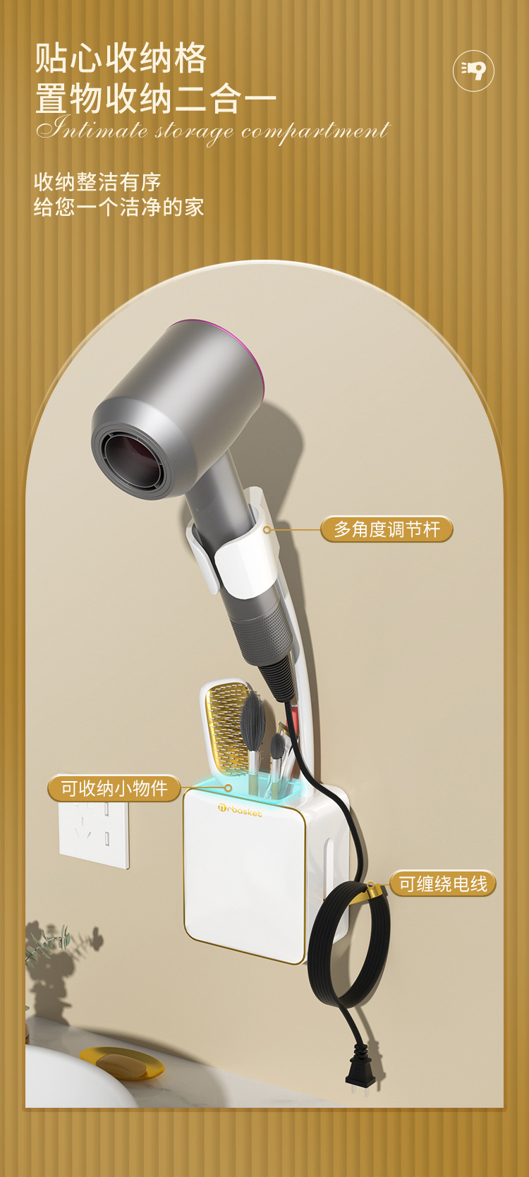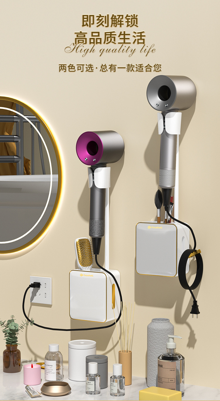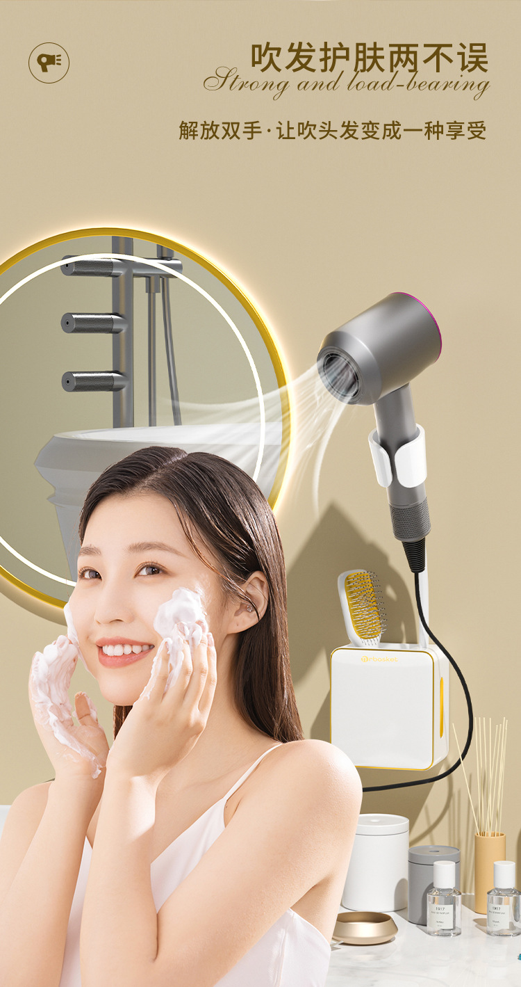 - Giá đỡ máy sấy tóc lười nhà vệ sinh, Máy Sấy Tóc không tay, Giá đỡ máy sấy tóc rảnh tay, treo tường không cần đục lỗ