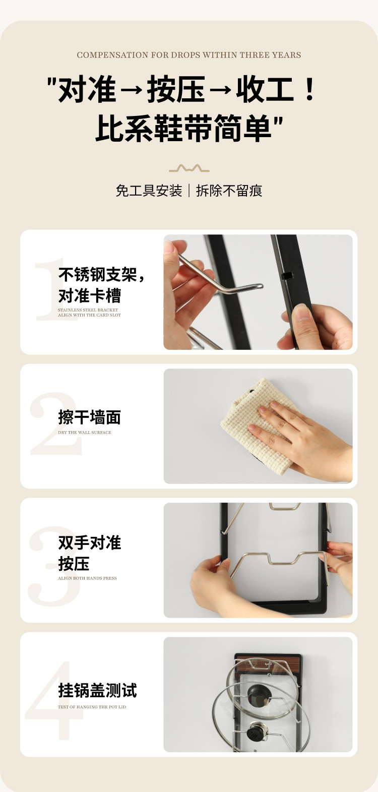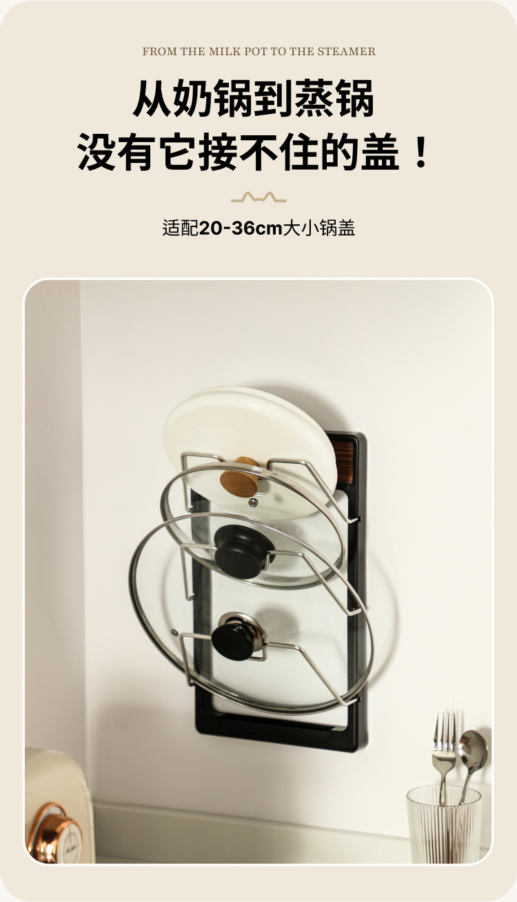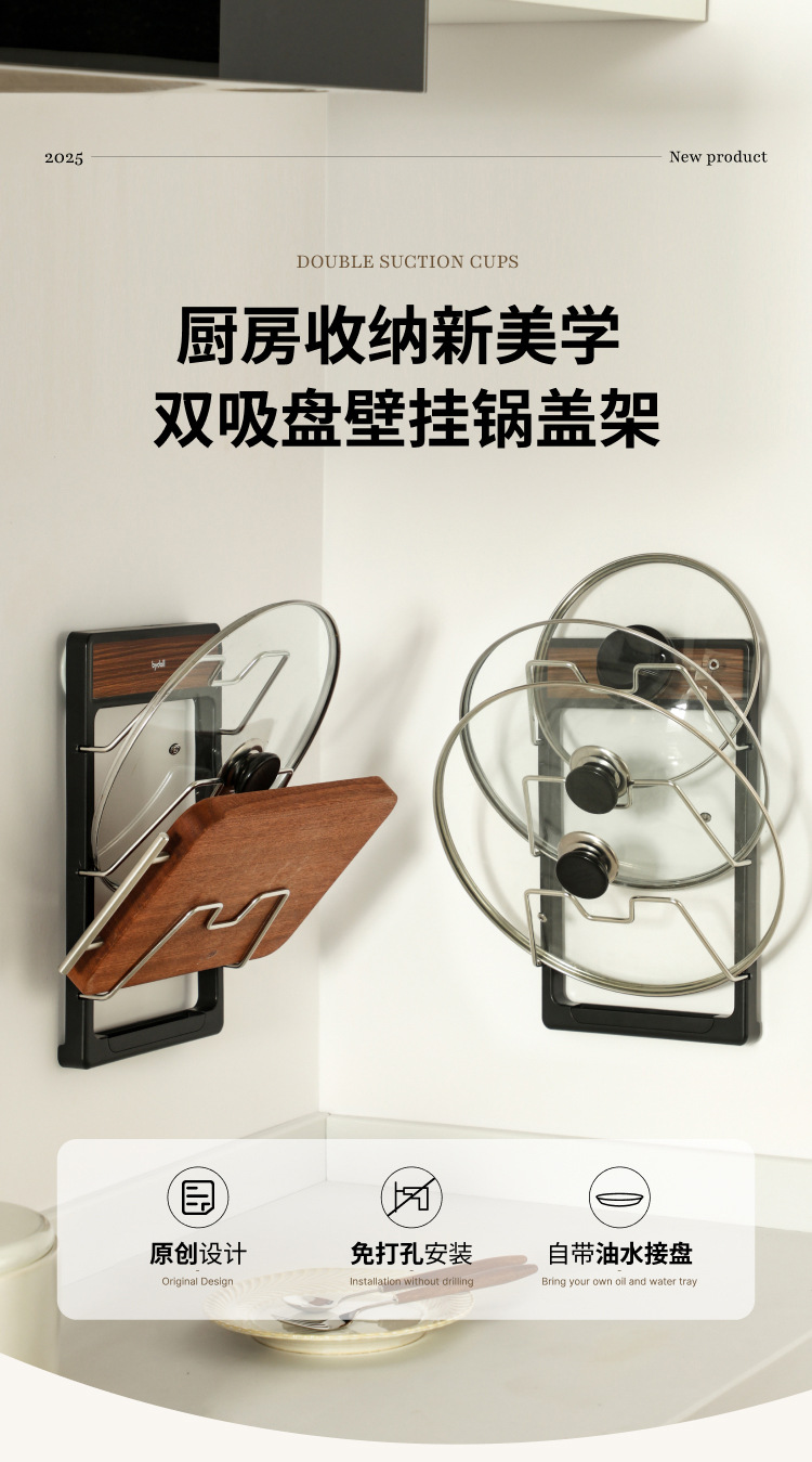 - Giá đỡ nắp nồi bằng thép không gỉ có cốc hút 2025 Giá để đồ nhà bếp không cần khoan treo tường để đặt thớt và hộp đựng đồ.