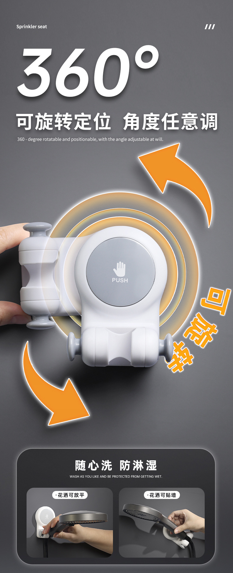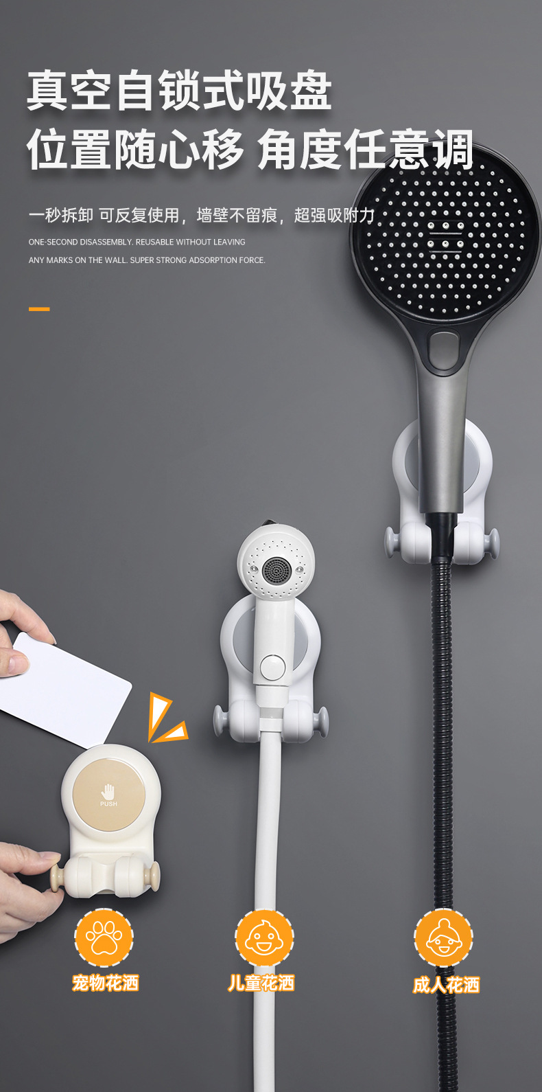 - Giá đỡ vòi hoa sen đa năng, giá đỡ khay hút phòng tắm, vòi hoa sen di động trẻ em không cần đục lỗ, đế cố định thần thánh