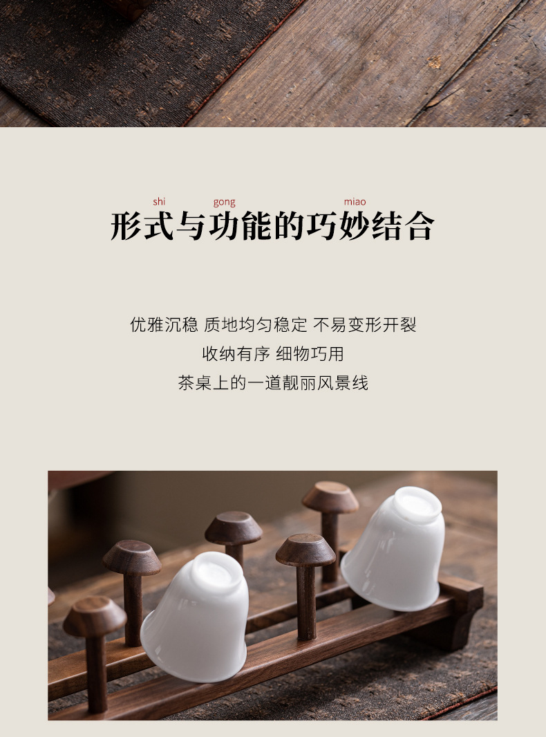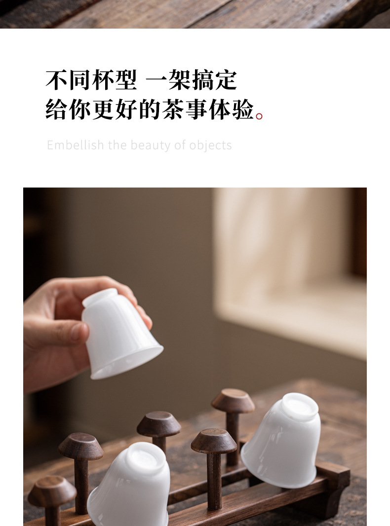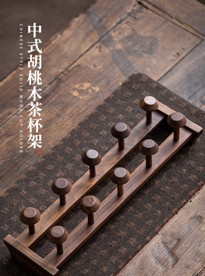 Giá đựng cốc trà gỗ óc chó phụ kiện trà đạo bằng gỗ nguyên khối bộ trà gia dụng cốc phơi kungfu phụ kiện đựng đồ thoát nước