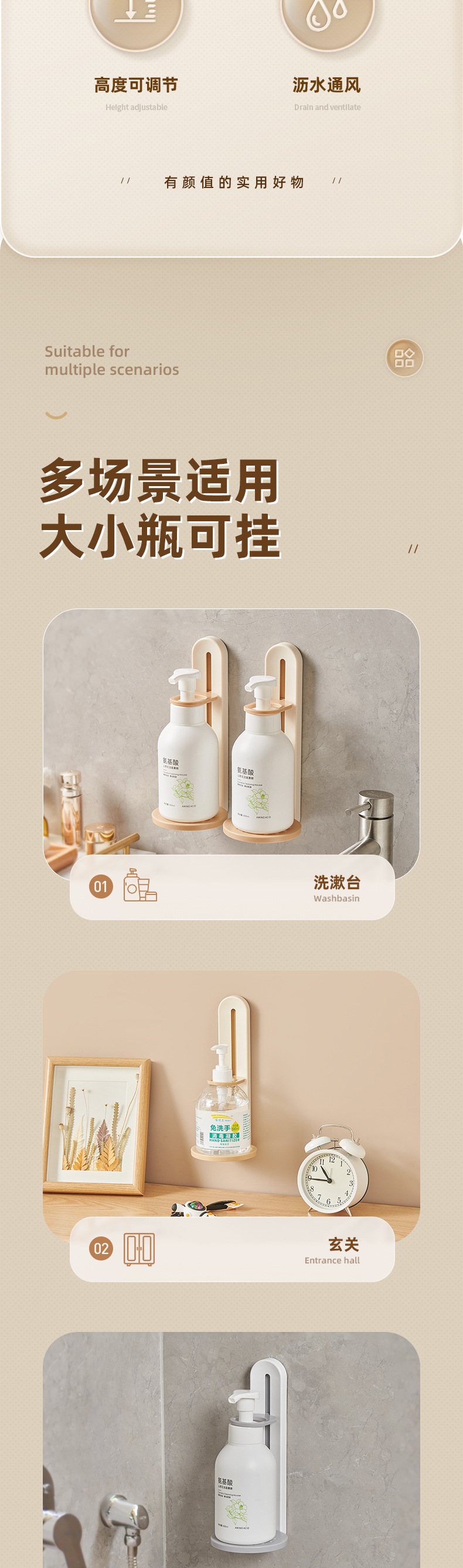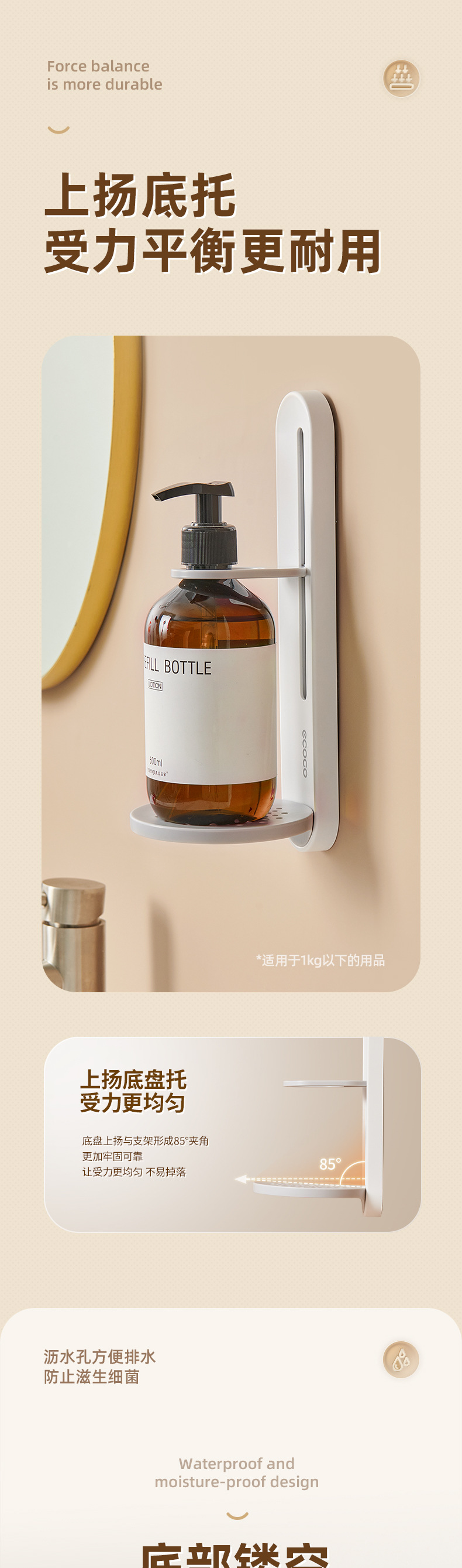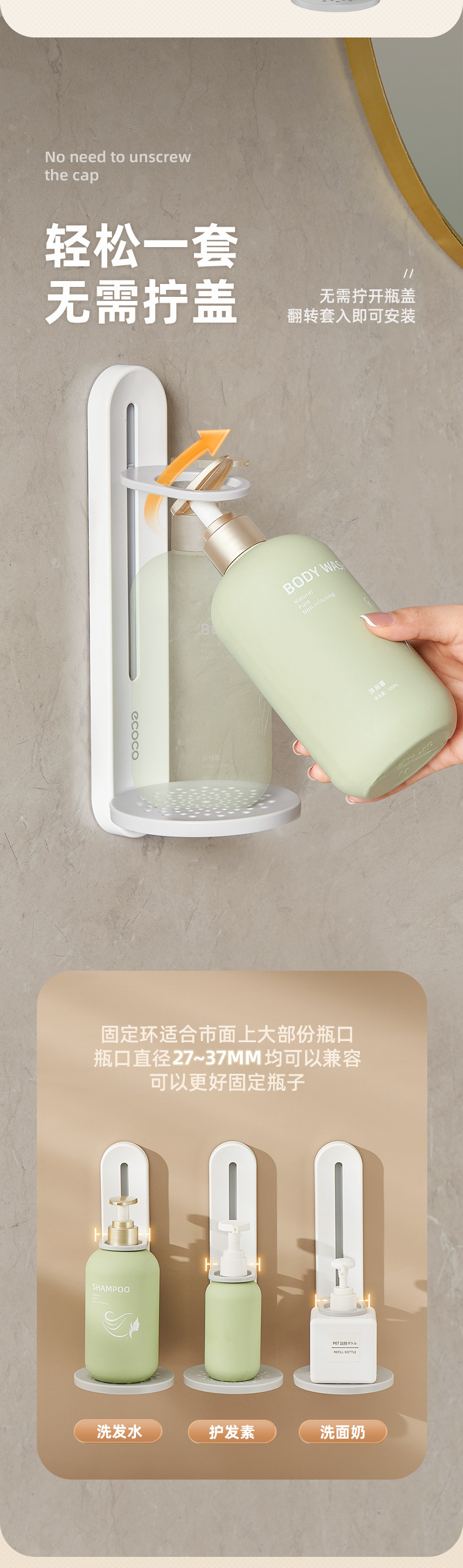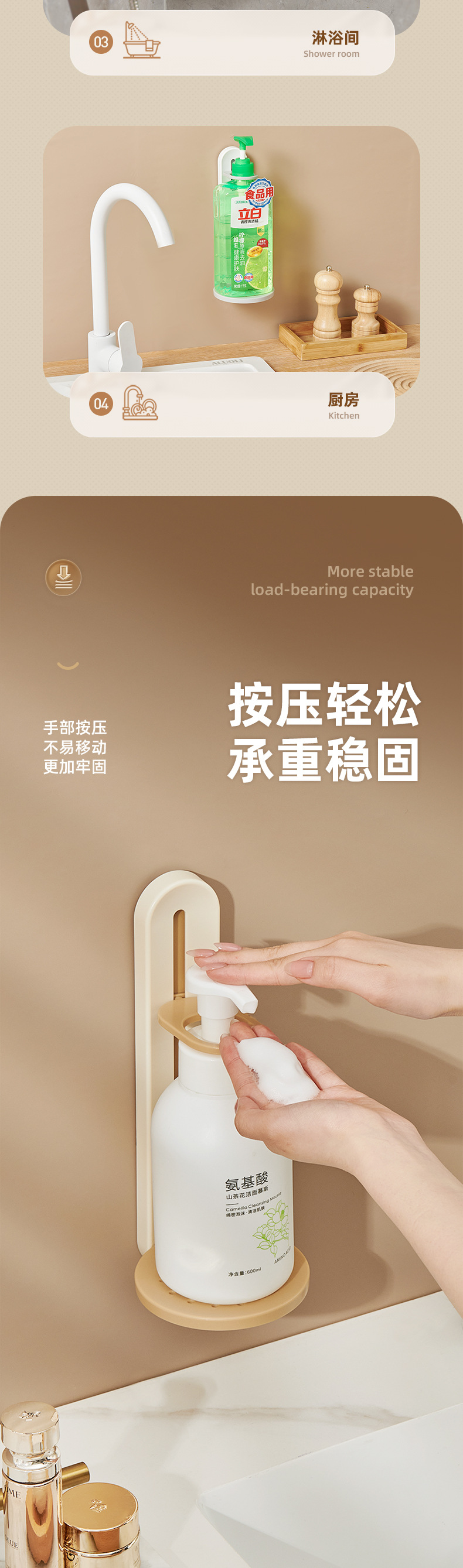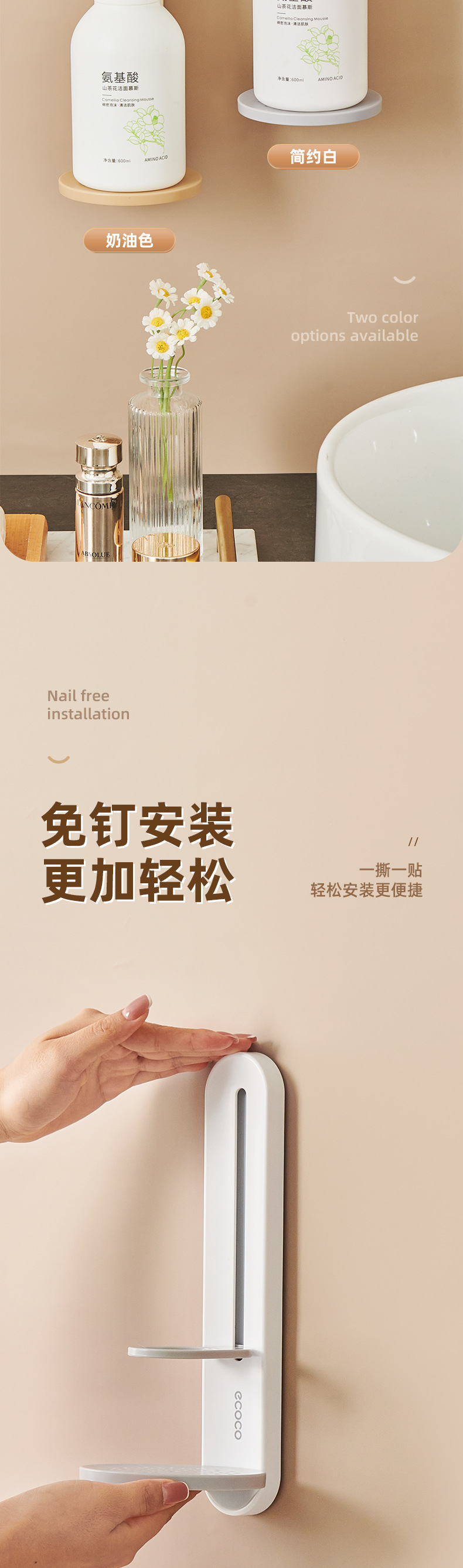 - Giá đựng sữa tắm, giá đỡ dầu gội treo không đục lỗ, phòng tắm, thiết bị treo tường rửa tay