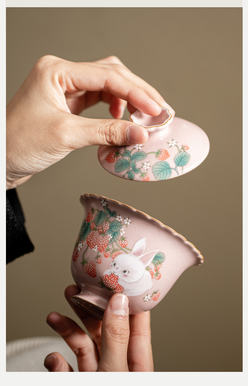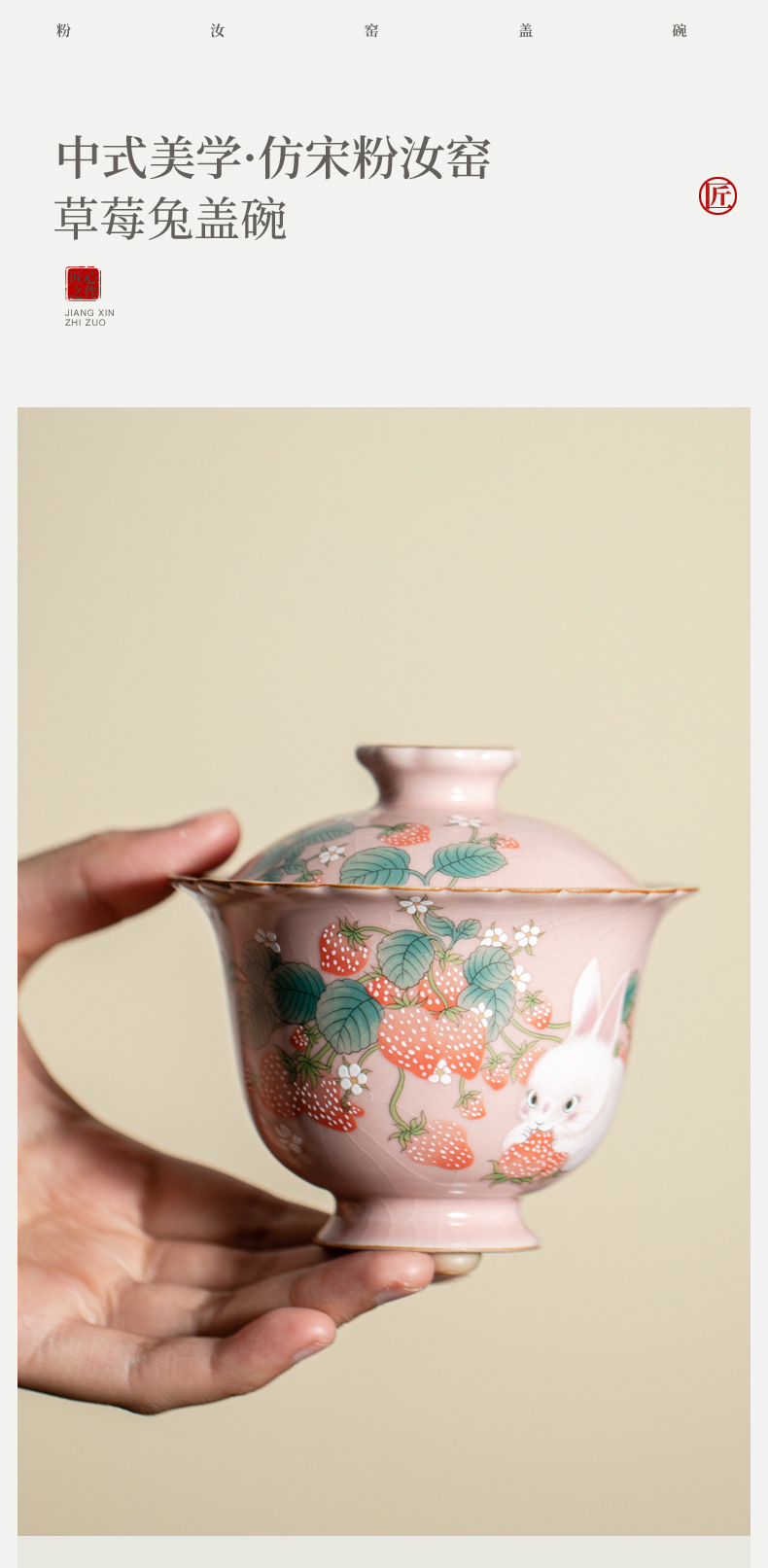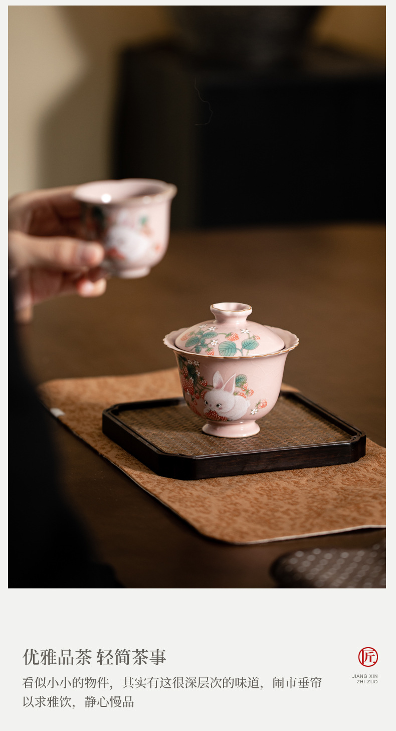 - Giả Song Bột Ru lò dâu thỏ hai cái nắp Bộ trà Kung Fu gốm sứ gia dụng Bát trà dung tích lớn có thể mở ra để nâng