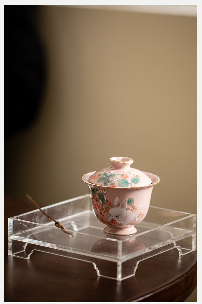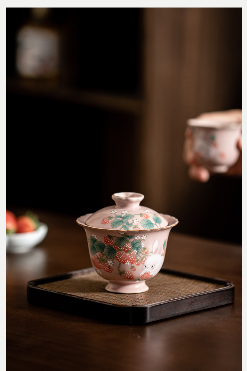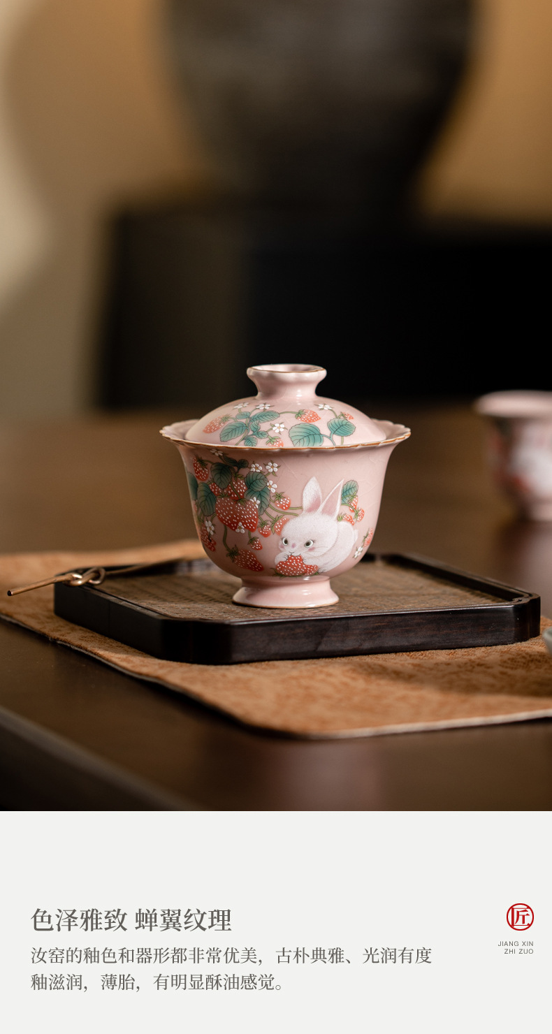 - Giả Song Bột Ru lò dâu thỏ hai cái nắp Bộ trà Kung Fu gốm sứ gia dụng Bát trà dung tích lớn có thể mở ra để nâng