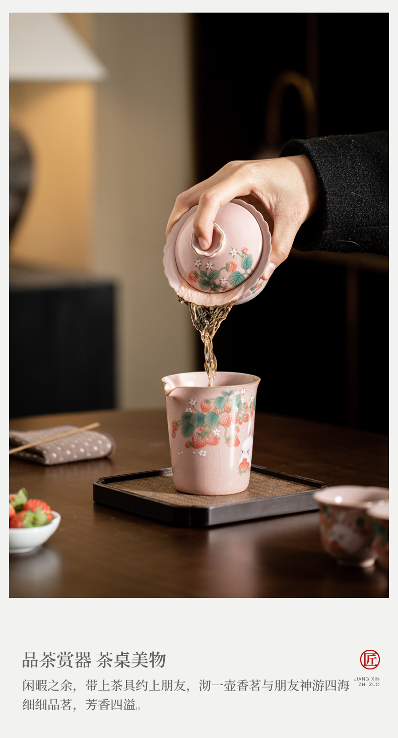 Giả Song Bột Ru lò dâu thỏ hai cái nắp Bộ trà Kung Fu gốm sứ gia dụng Bát trà dung tích lớn có thể mở ra để nâng