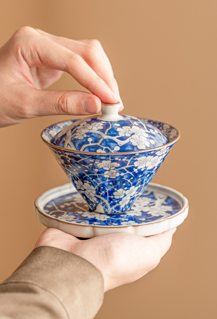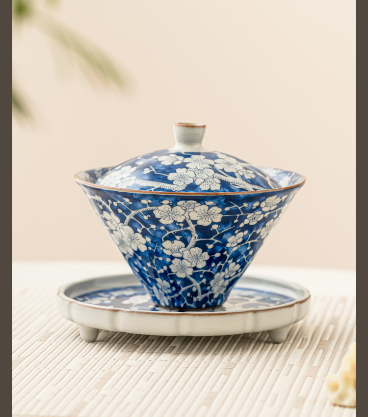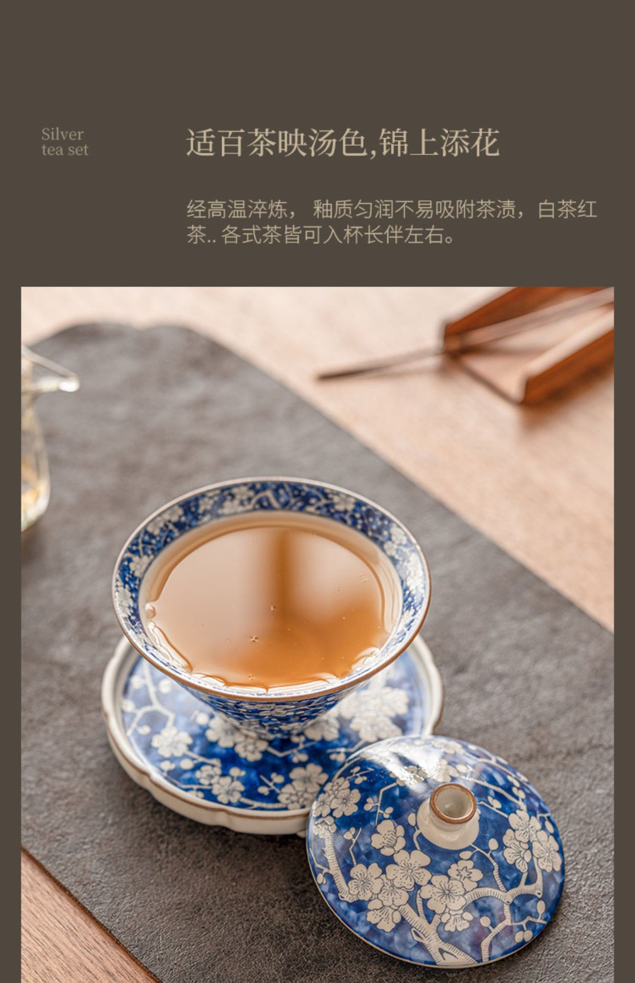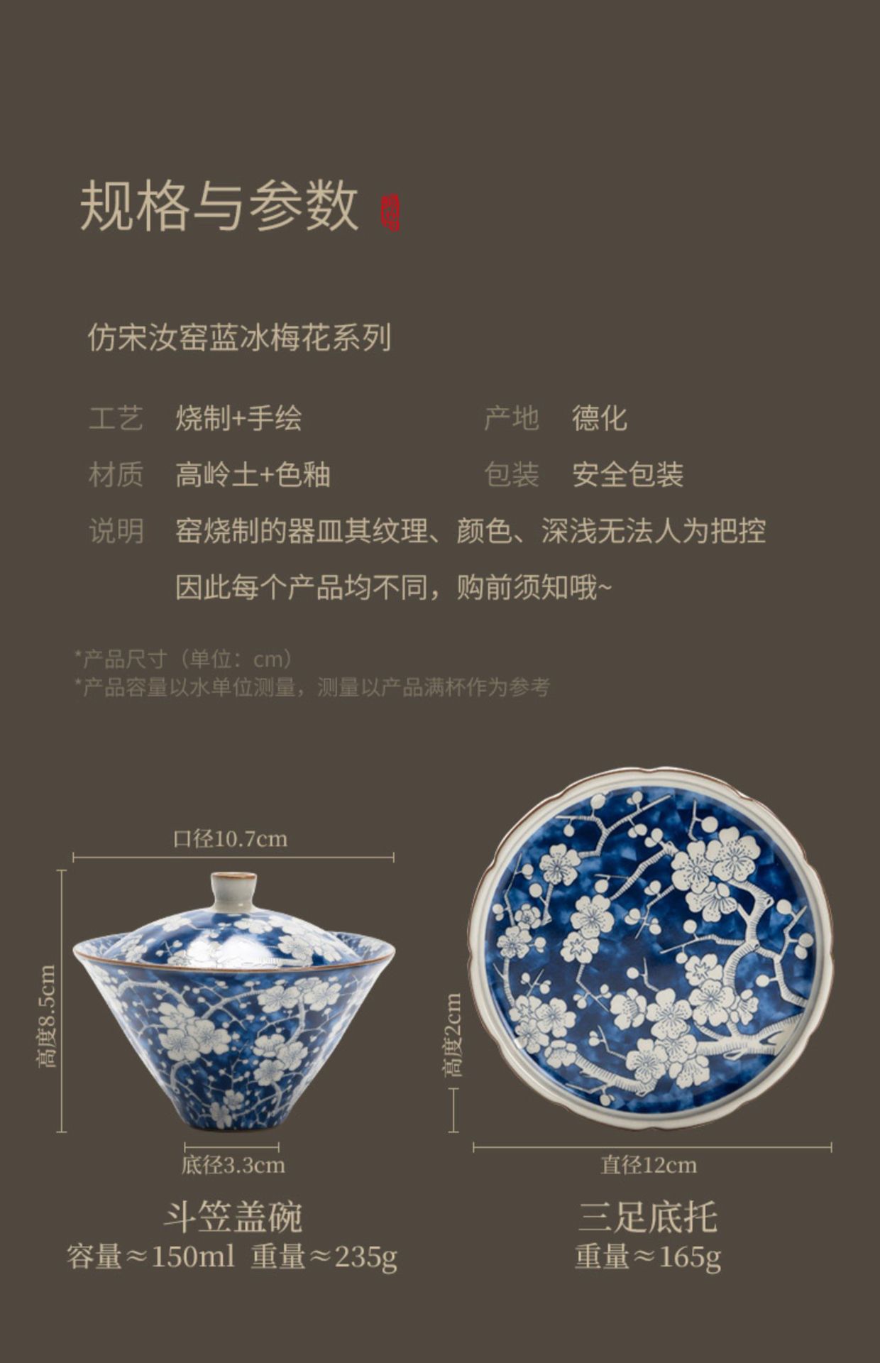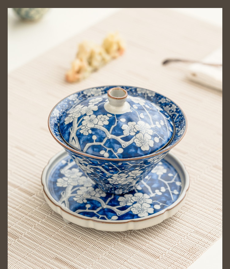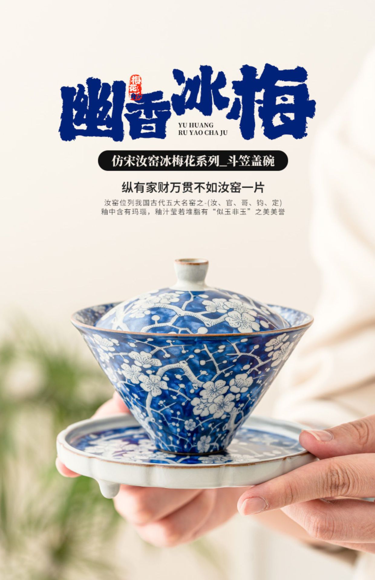 - Giả Song Ru lò màu xanh băng hoa mận mũ có Nắp bát trà Bộ trà cao cấp có nắp Bát Trà Tam Tài Bát lớn