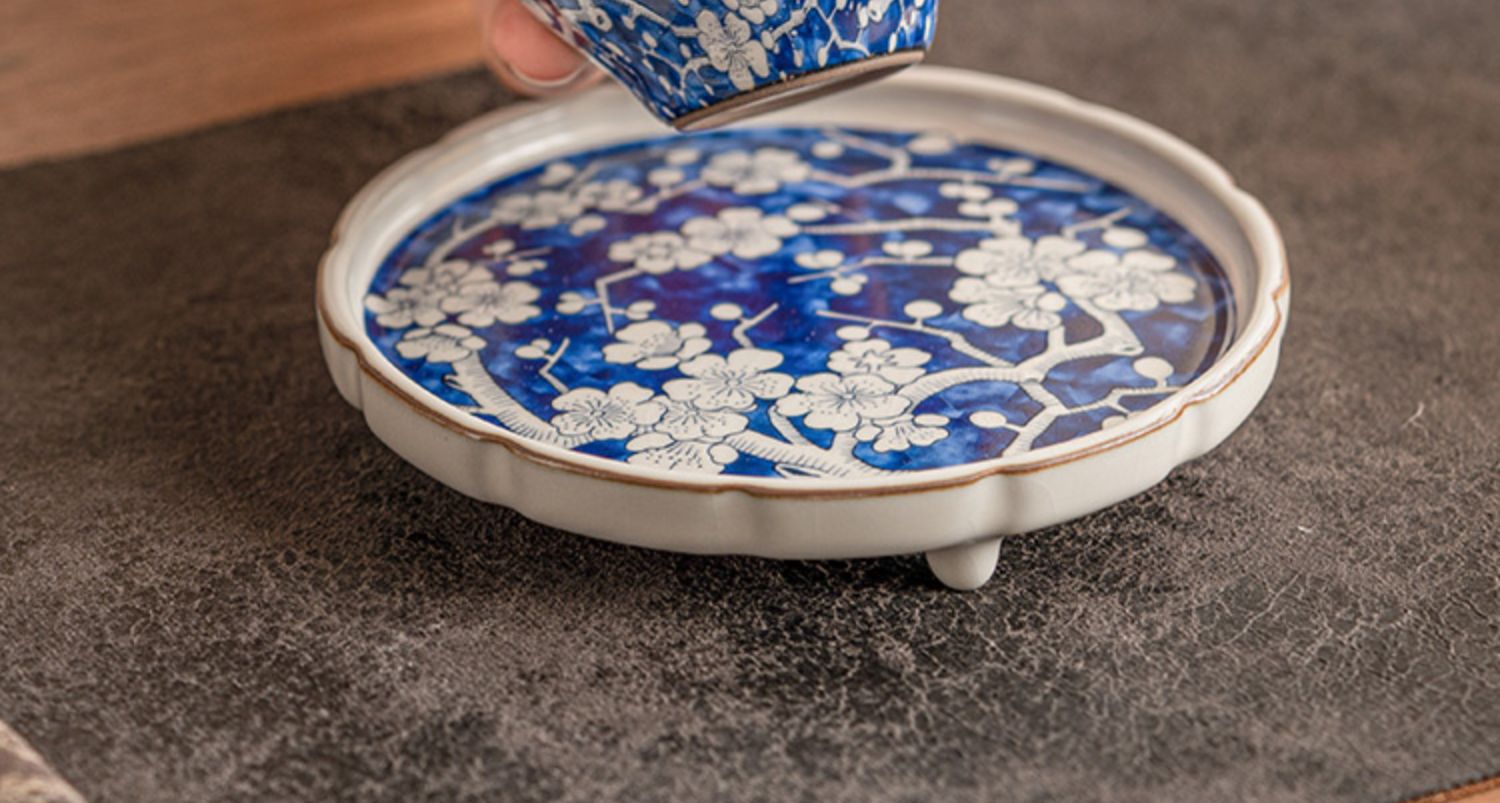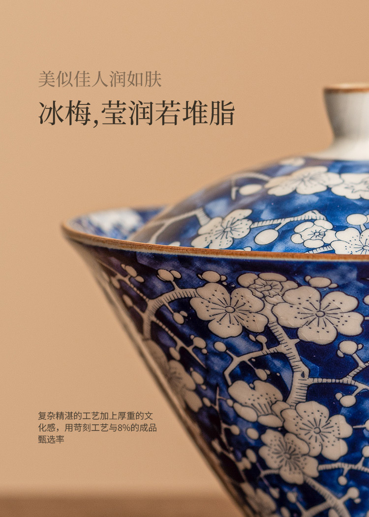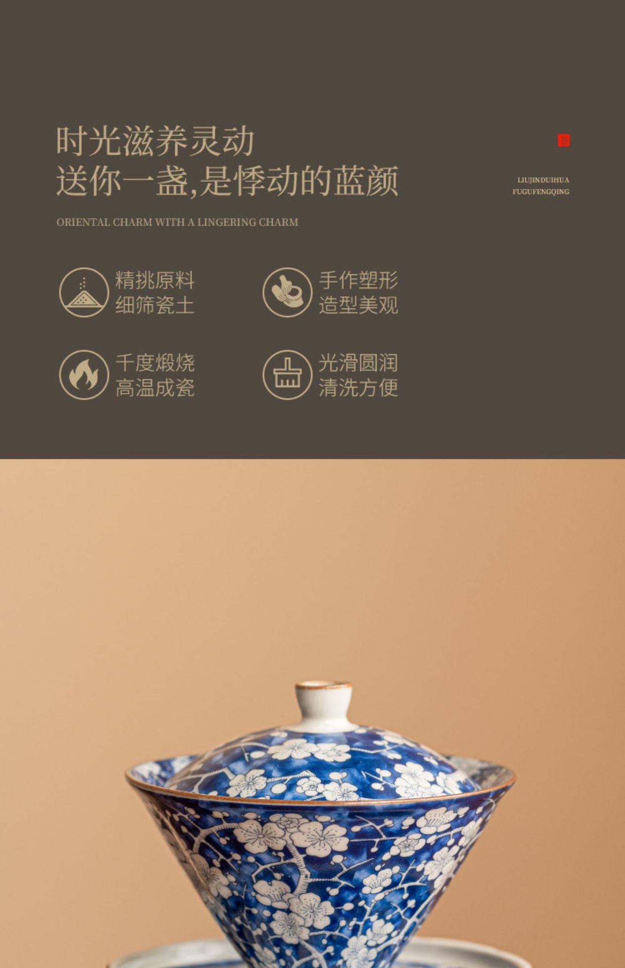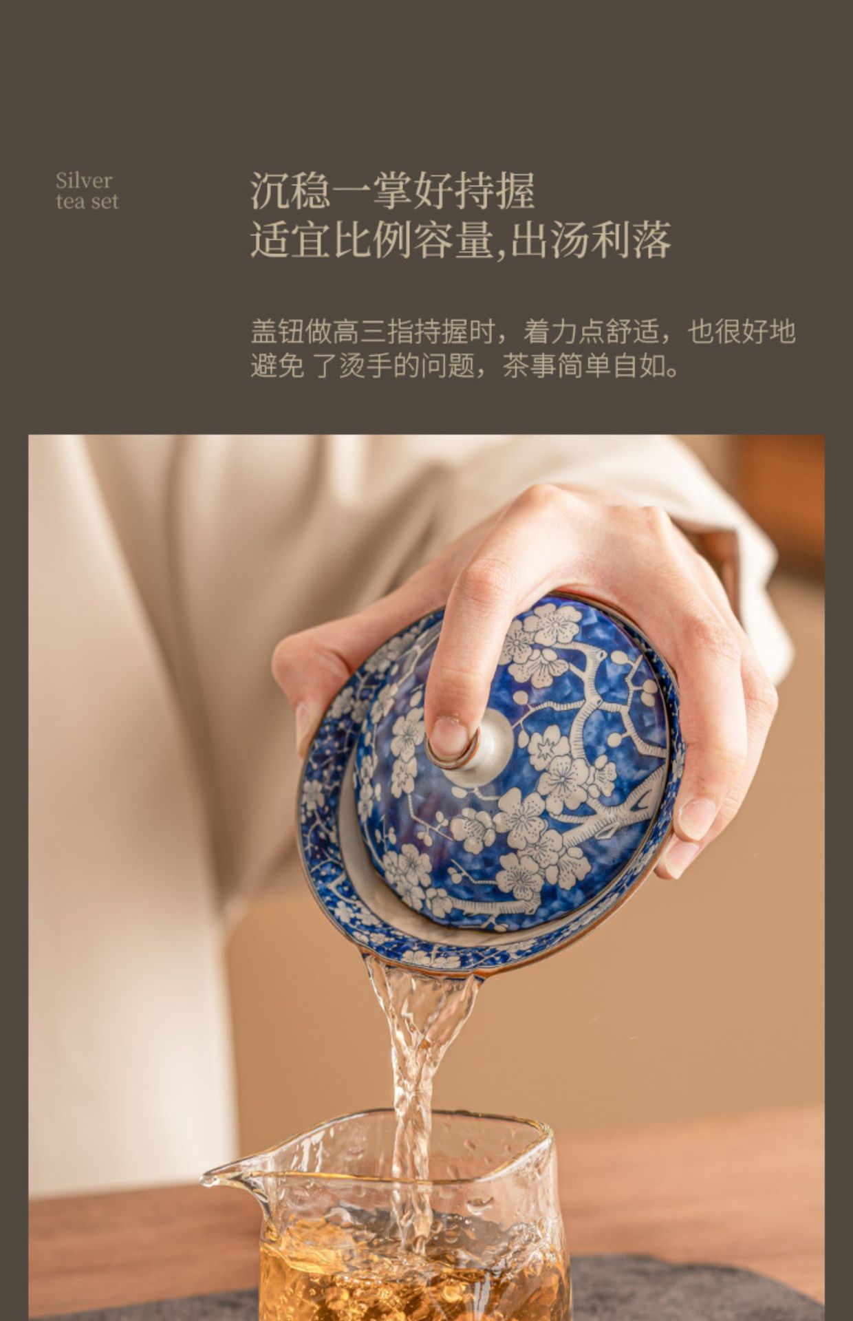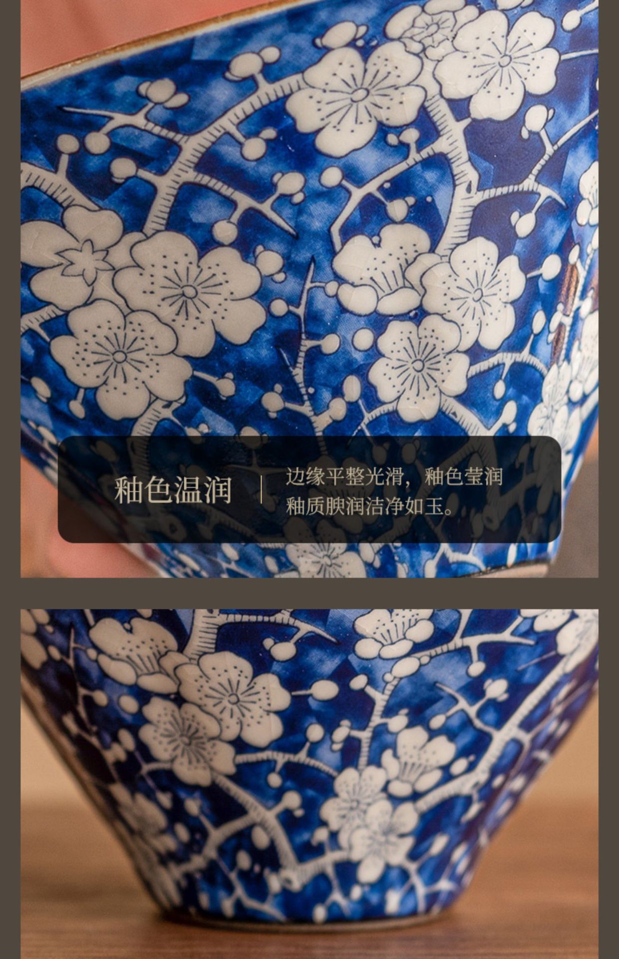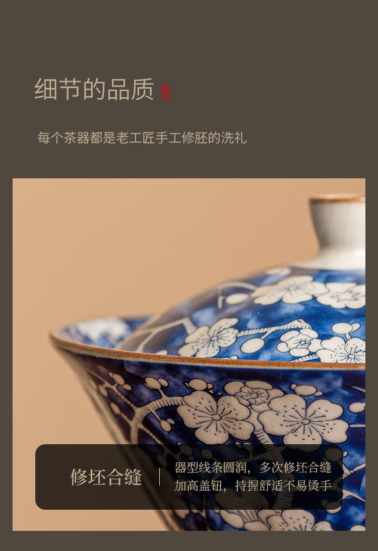 - Giả Song Ru lò màu xanh băng hoa mận mũ có Nắp bát trà Bộ trà cao cấp có nắp Bát Trà Tam Tài Bát lớn
