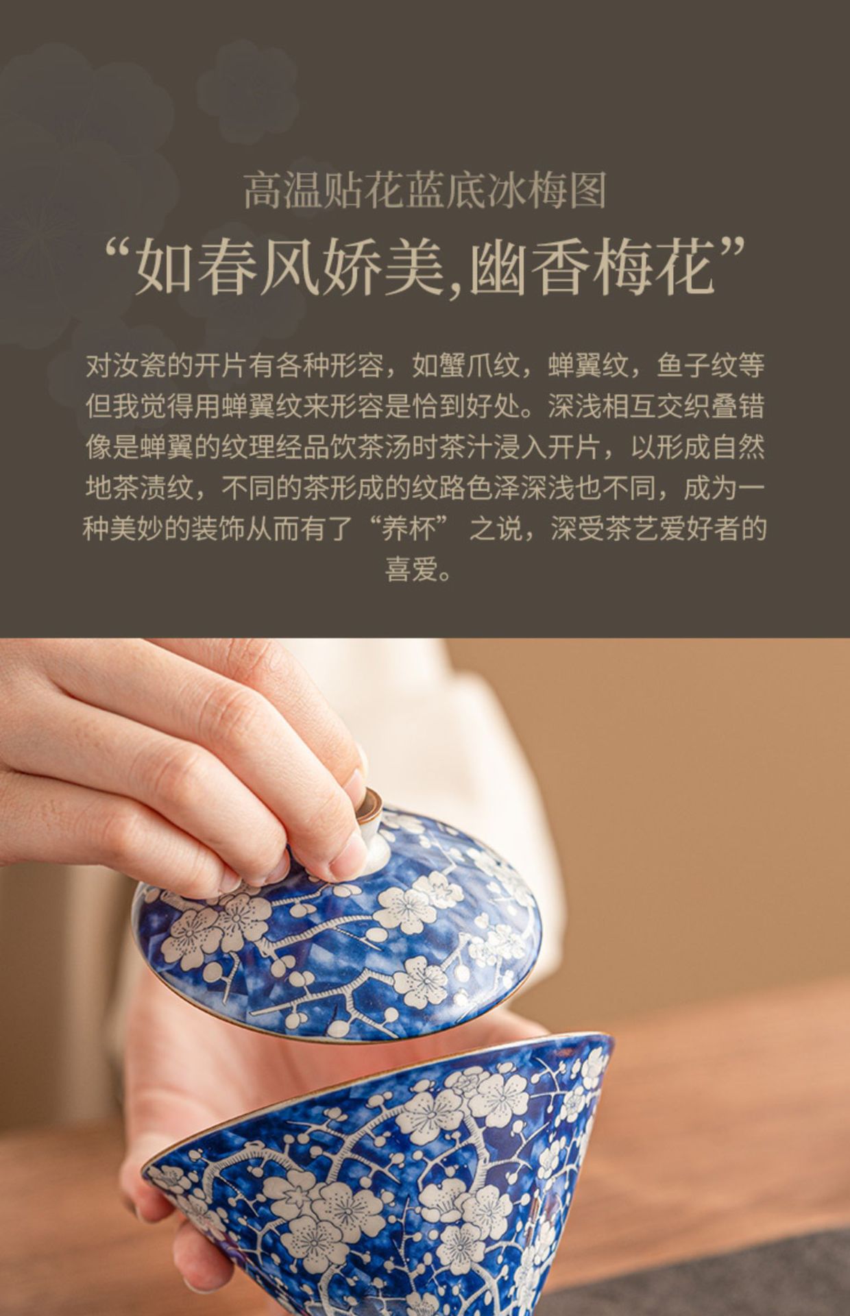 Giả Song Ru lò màu xanh băng hoa mận mũ có Nắp bát trà Bộ trà cao cấp có nắp Bát Trà Tam Tài Bát lớn