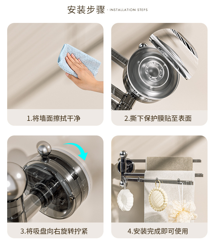 - Giá treo khăn cốc hút góc phòng tắm không đục lỗ xoay nhiều thanh đựng khăn tắm giá treo khăn tắm