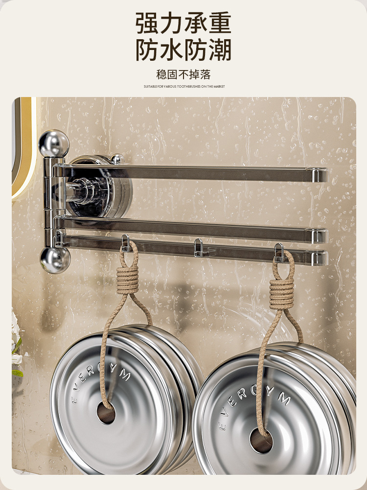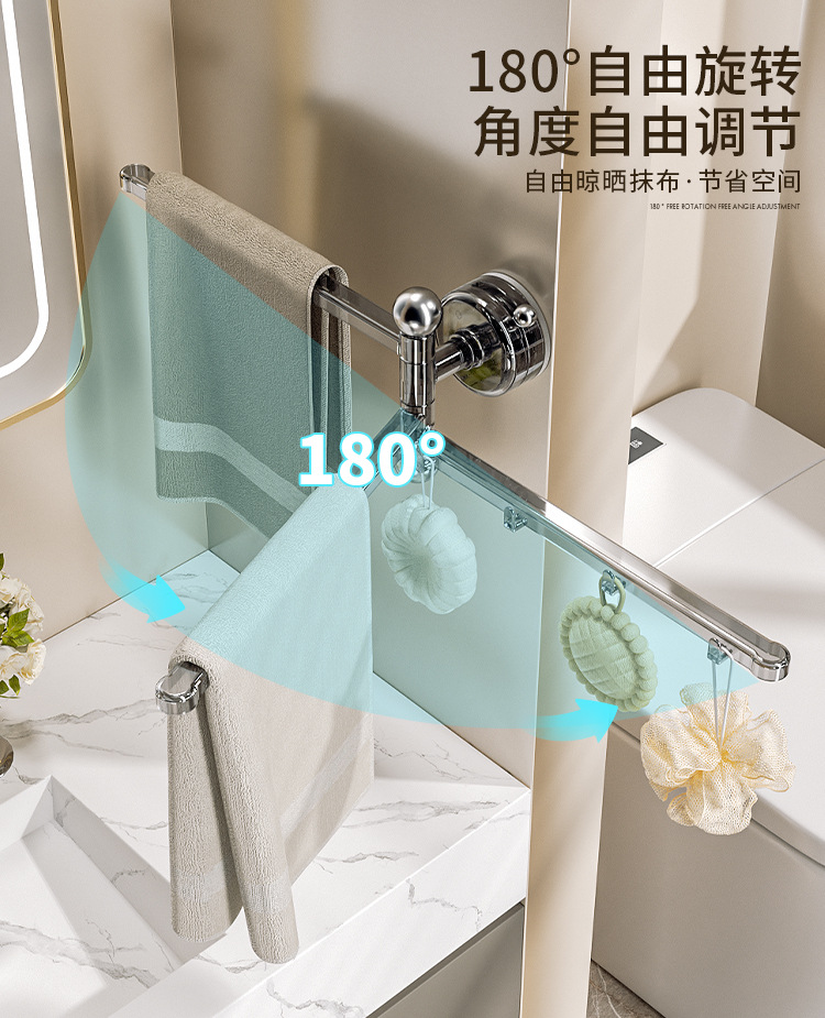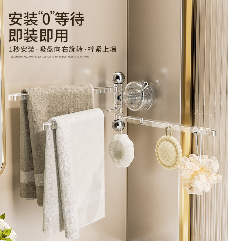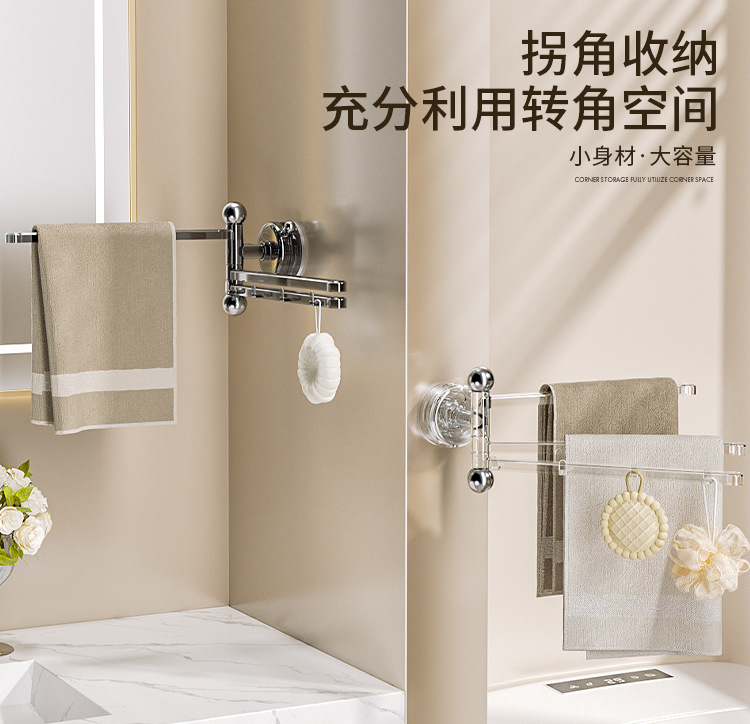 Giá treo khăn cốc hút góc phòng tắm không đục lỗ xoay nhiều thanh đựng khăn tắm giá treo khăn tắm