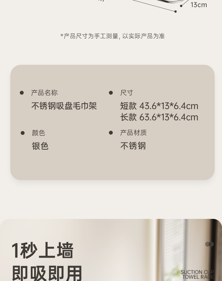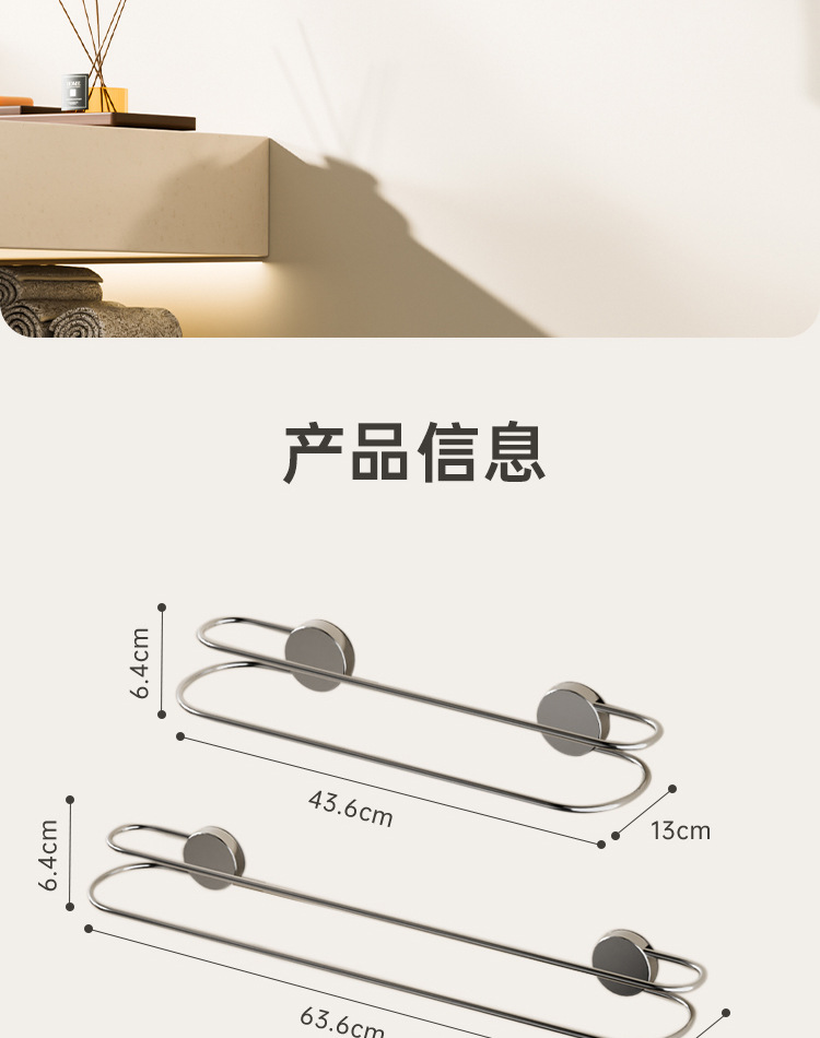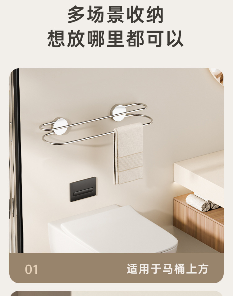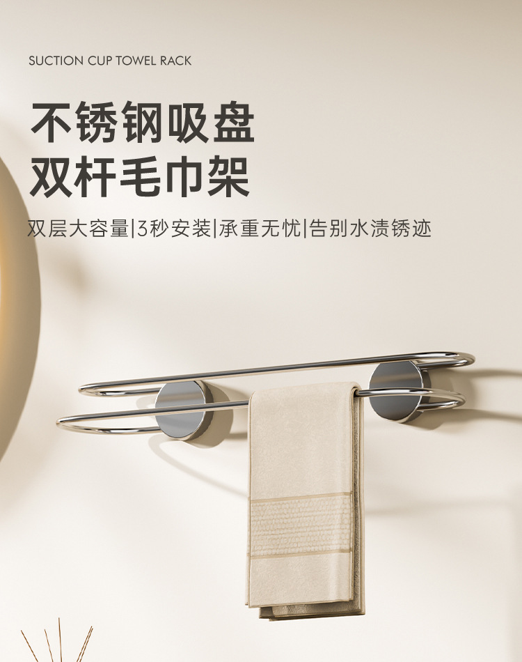 品名:不锈钢吸盘双杆毛巾架