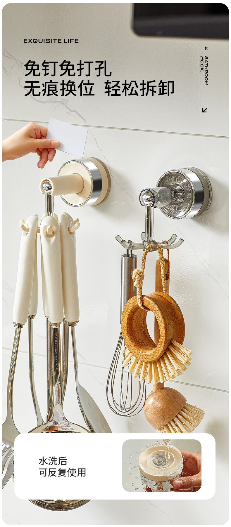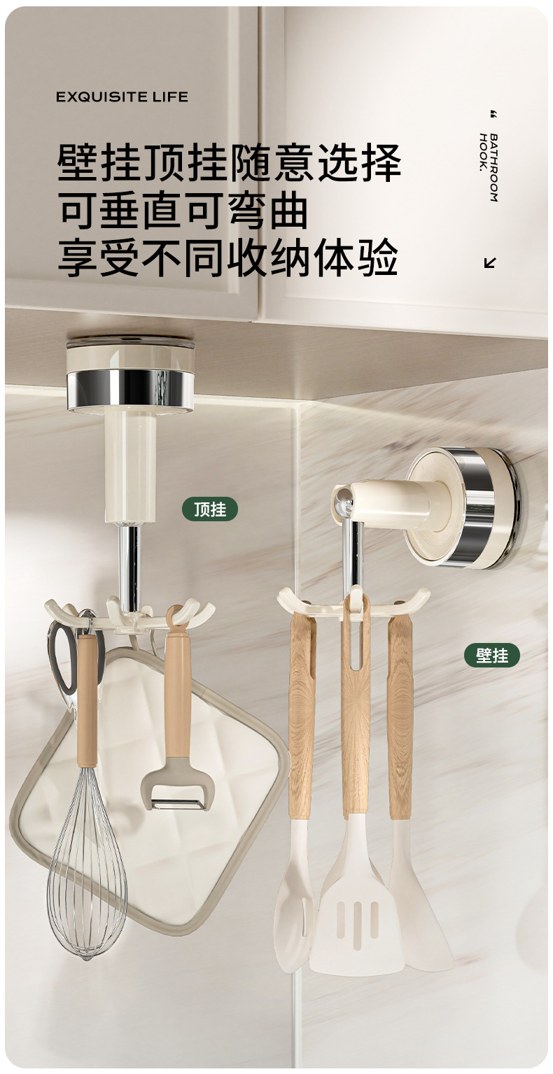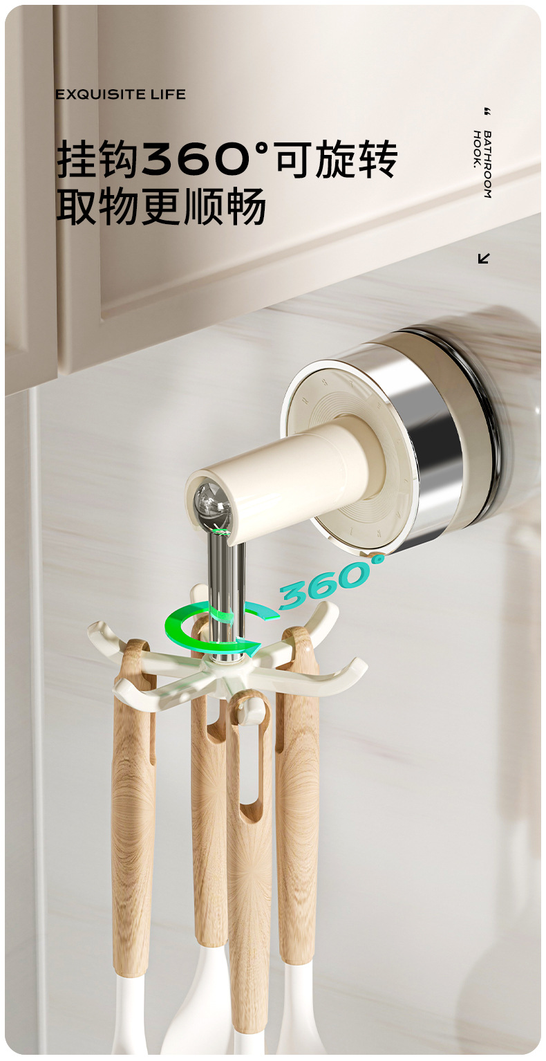 Giá treo móc xoay 6 móng cốc hút bếp Lexi giá treo tường thìa thìa không đục lỗ gia dụng