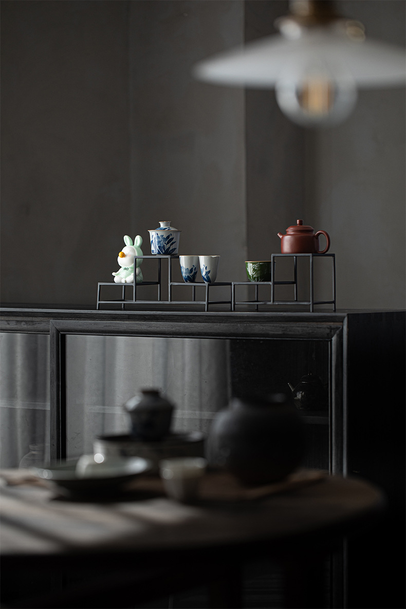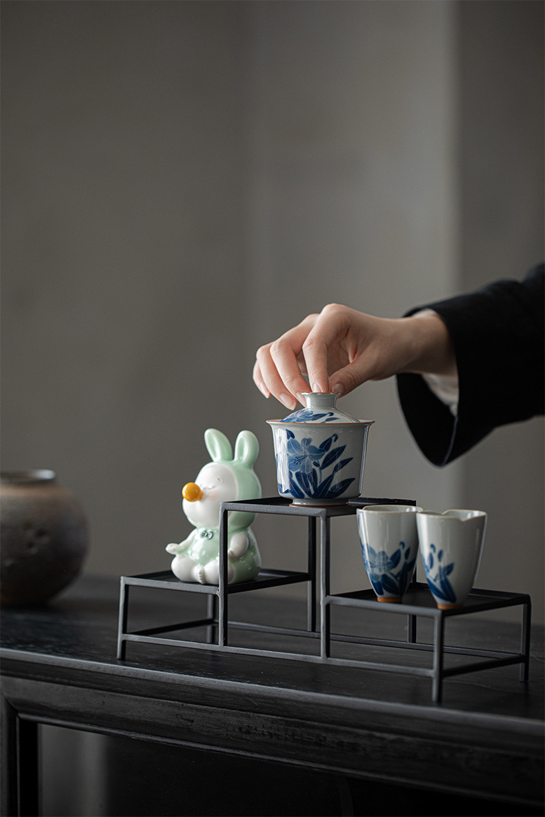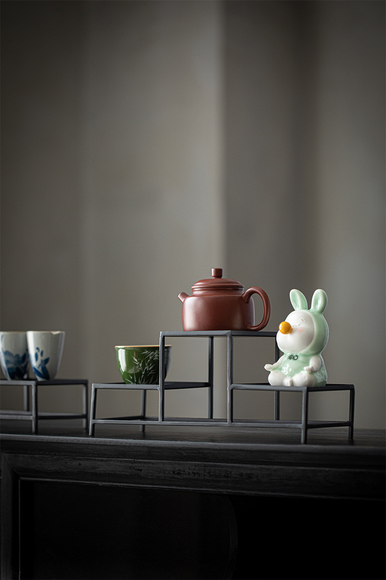- Giá trưng bày Bộ trà bằng sắt nghệ thuật sang trọng nhẹ, giá để đồ Bộ trà bằng sắt thủ công, Giá để đồ Bogu, tách trà, giá ấm trà