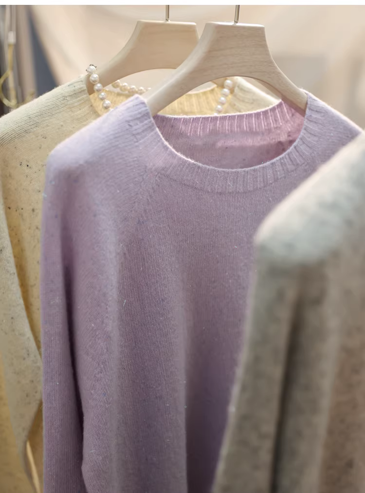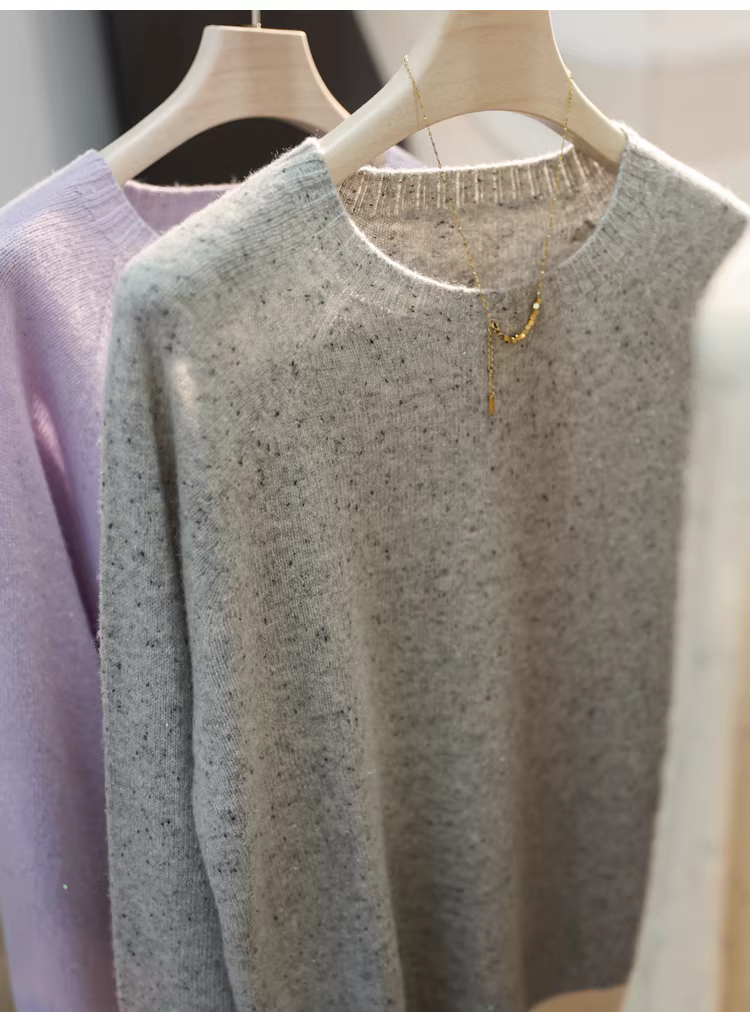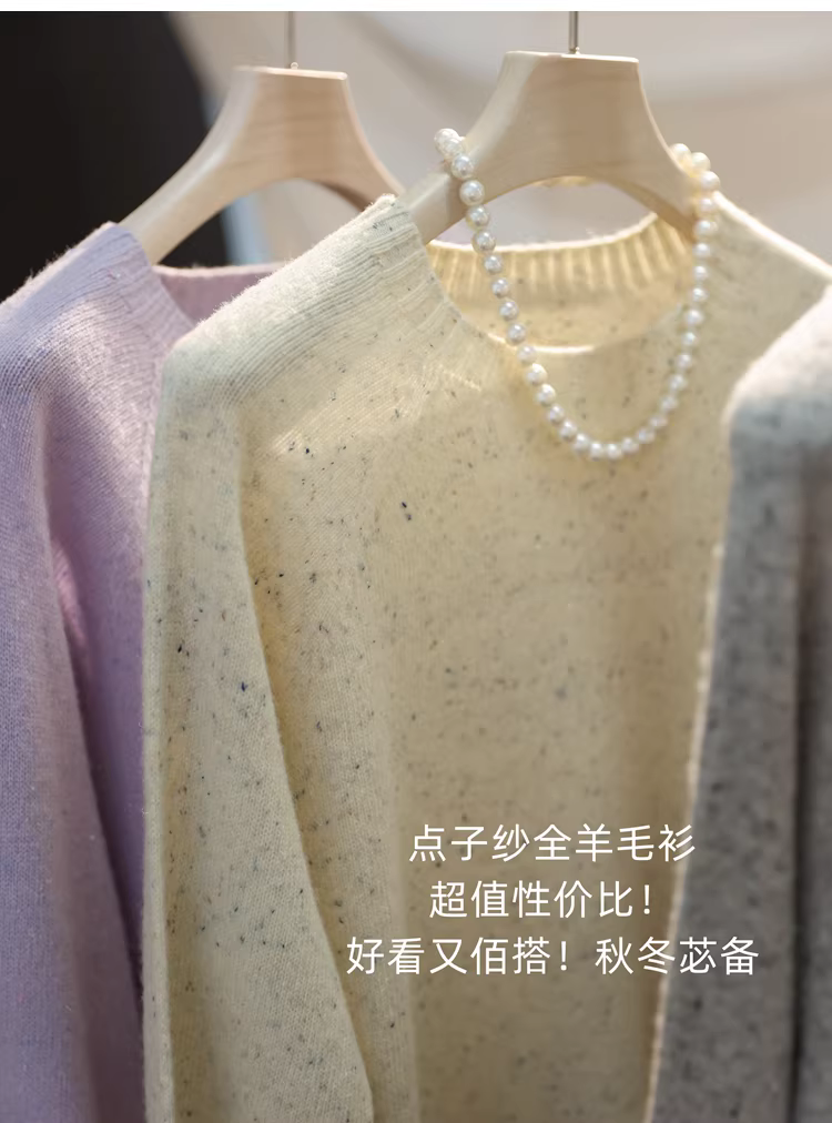 - Giảm giá siêu ưu đãi! Áo len len 100% sợi tơ tằm hoa văn, cổ tròn, dệt kim liền mạch, họa tiết chấm bi dành cho nữ, mùa thu.