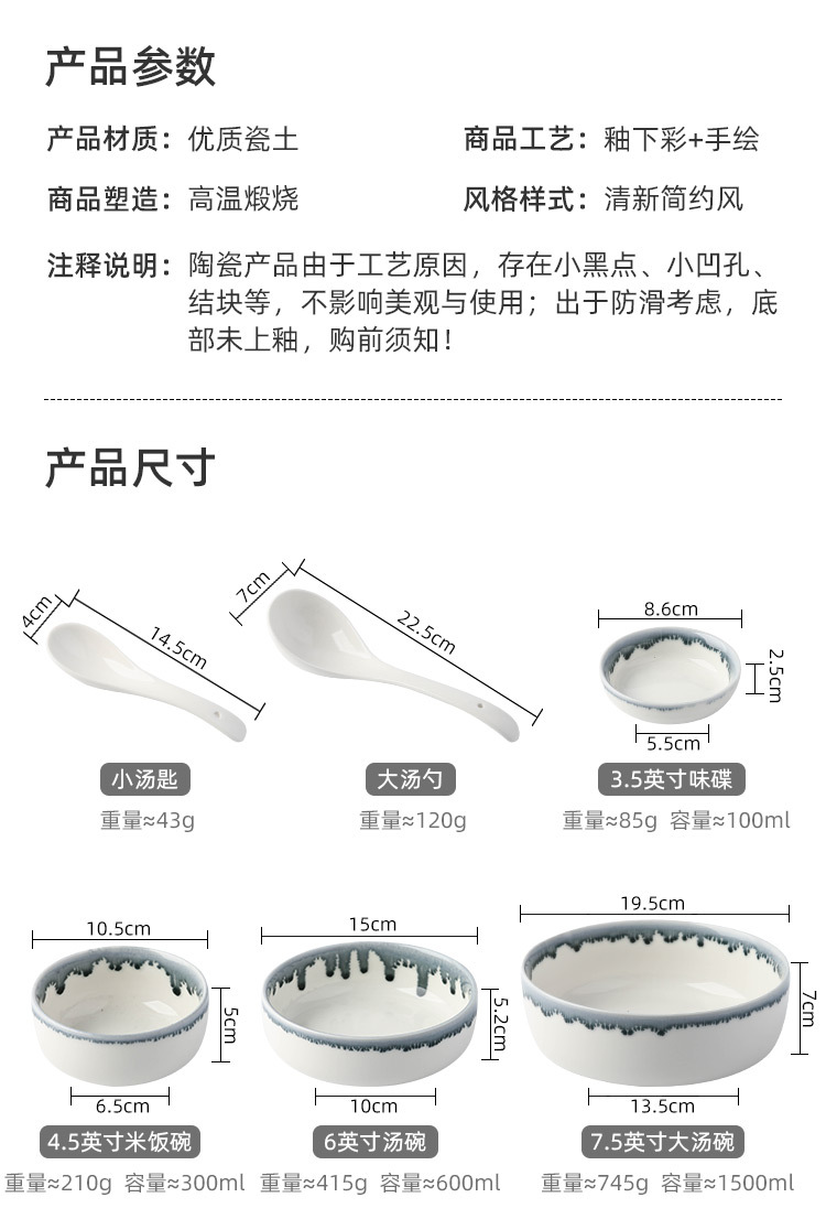 - [Giảm giá thông quan đặc biệt] Bộ bát đĩa gốm sứ Bắc Âu, bát gia dụng, bát ăn, bát canh, bộ đồ ăn cao cấp